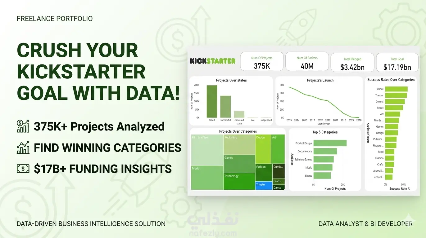 375K+ Projects Analyzed (تحليل أكثر من 375 ألف مشروع) $17B+ Funding Insights (تحليلات تمويل تتجاوز 17 مليار دولار) Find Winning Categories (اكتشف الفئات الفائزة)