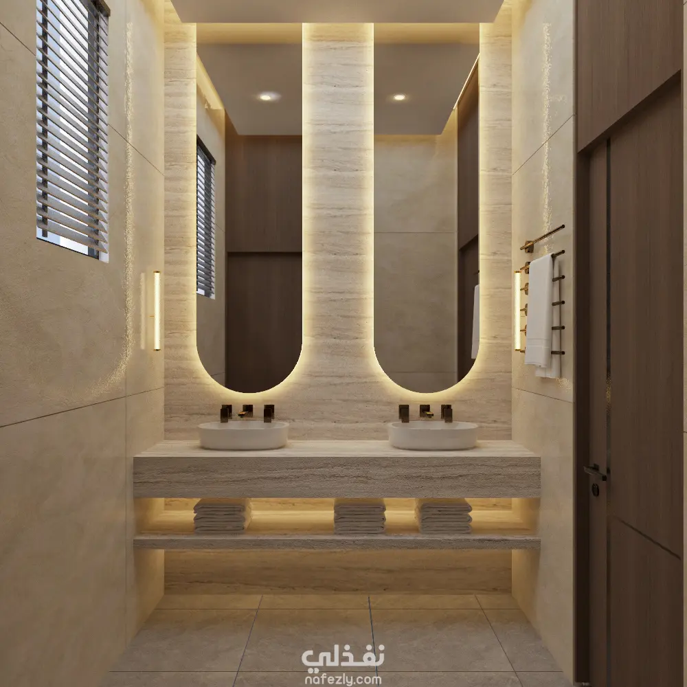 تصميم حمام ماستر يجب أن يجمع بين الفخامة والراحة مع لمسات عصرية. يمكنك اختيار أرضيات وجدران من الرخام أو البلاط الفاخر بألوان محايدة كالرمادي أو البيج. وجود حوض استحمام مستقل مع تصميم أنيق يضيف لمسة من الرفاهية، بالإضافة إلى دش زجاجي واسع. الأحواض تكون مزدوجة لتوفير راحة أكبر، مع إضاءة دافئة وموزعة بشكل جيد، ومرايا كبيرة تزيد إحساس الاتساع. يمكنك إضافة رفوف للتخزين مخفية للحفاظ على ترتيب وأناقة المكان.