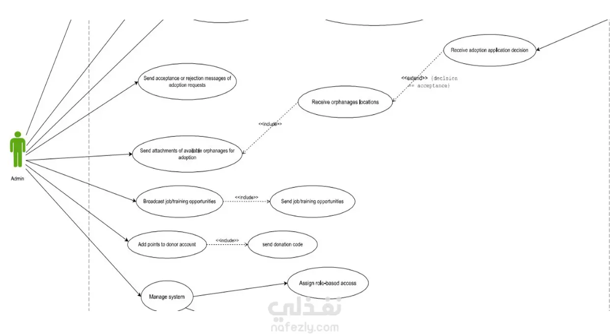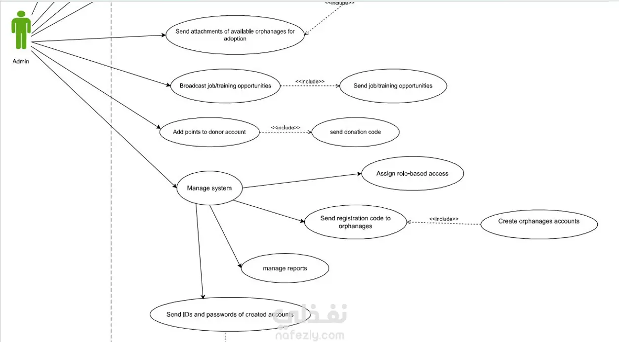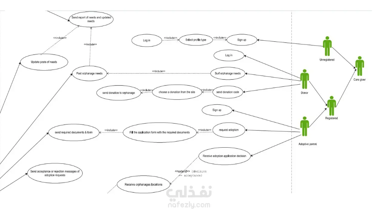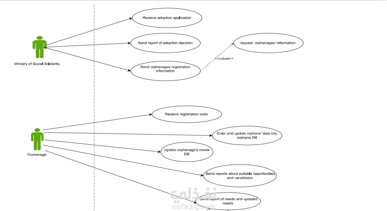 First, the platform will replace paper-based systems with a centralized digital database for managing children’s records, donations, and activities. This will reduce errors, prevent lost information, and provide quick access to critical data Second, the system will include a real-time needs dashboard where orphanages can list their specific requirements, such as clothes, medicines, or educational supplies. Donors across the country can view these needs and contribute accordingly, ensuring that donations are relevant and impactful. Additionally, the system will enhance communication by providing a structured process for adoptive parents. It will facilitate their initial contact with the Ministry of Social Solidarity to obtain approval and necessary documentation. Once approved, the system will guide them in identifying which orphanage, across the country, houses a child that meets their adoption criteria. And allow key stakeholders including donors, and job providers to interact directly with the system. Finally, a dedicated employment module will support older orphans and graduates by connecting them to vocational training, internships, and job opportunities through partnerships with local businesses. By partnering with businesses and training centers, the platform will provide structured programs to help them become self-sufficient.