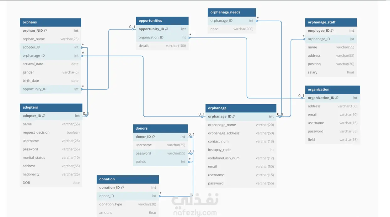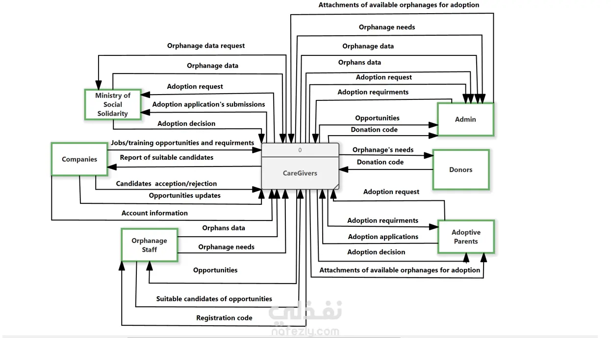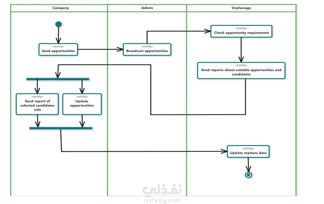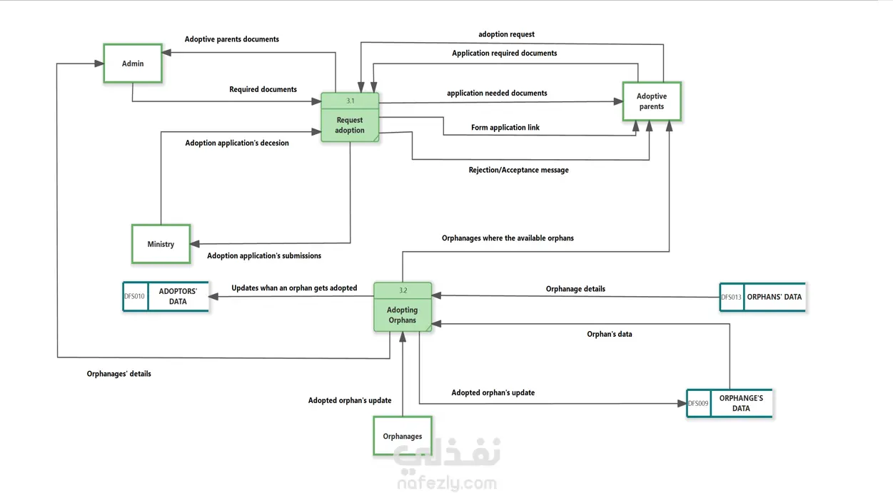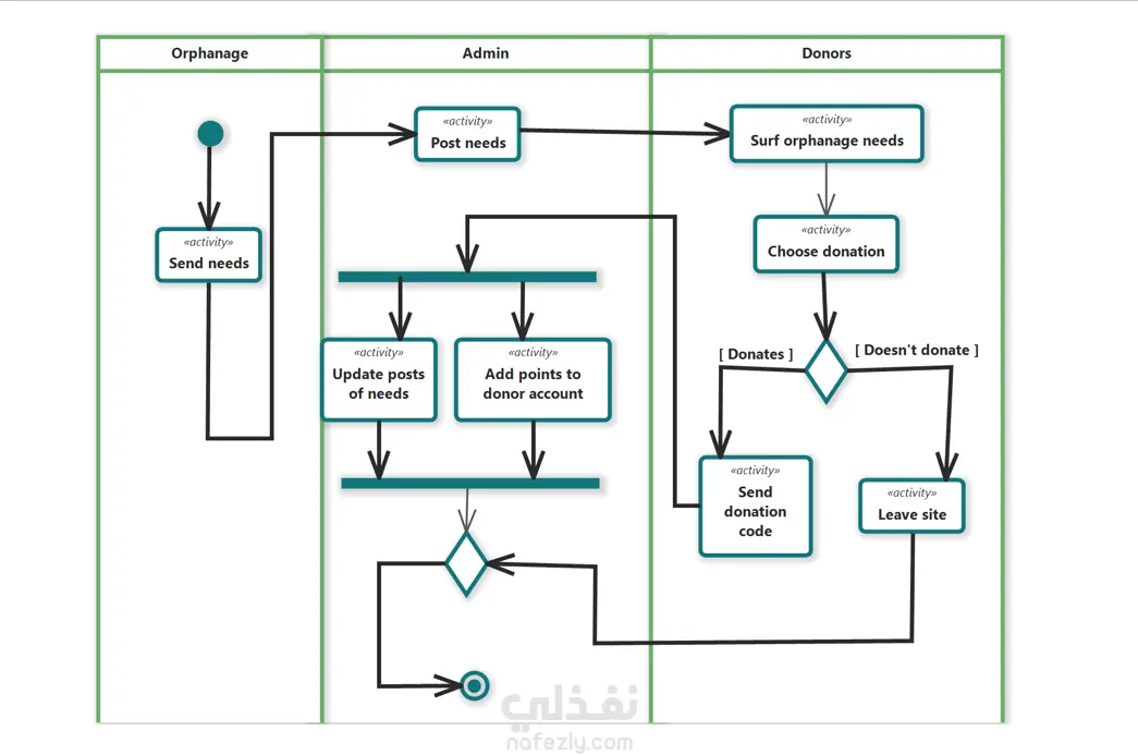 First, the platform will replace paper-based systems with a centralized digital database for managing children’s records, donations, and activities. This will reduce errors, prevent lost information, and provide quick access to critical data Second, the system will include a real-time needs dashboard where orphanages can list their specific requirements, such as clothes, medicines, or educational supplies. Donors across the country can view these needs and contribute accordingly, ensuring that donations are relevant and impactful. Additionally, the system will enhance communication by providing a structured process for adoptive parents. It will facilitate their initial contact with the Ministry of Social Solidarity to obtain approval and necessary documentation. Once approved, the system will guide them in identifying which orphanage, across the country, houses a child that meets their adoption criteria. And allow key stakeholders including donors, and job providers to interact directly with the system. Finally, a dedicated employment module will support older orphans and graduates by connecting them to vocational training, internships, and job opportunities through partnerships with local businesses. By partnering with businesses and training centers, the platform will provide structured programs to help them become self-sufficient.