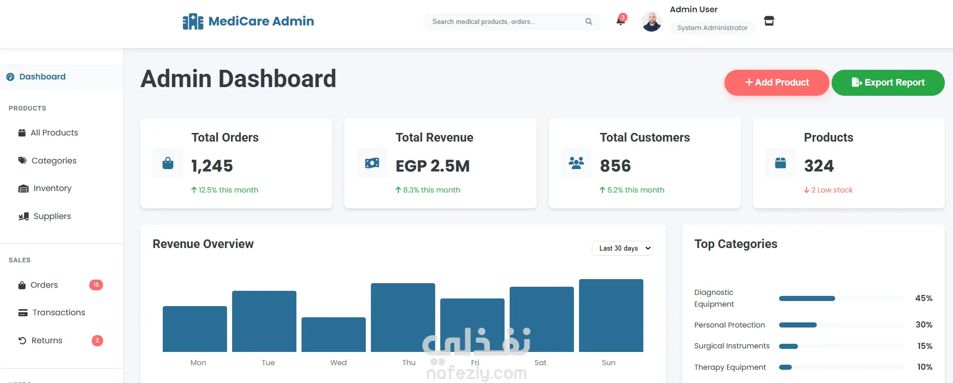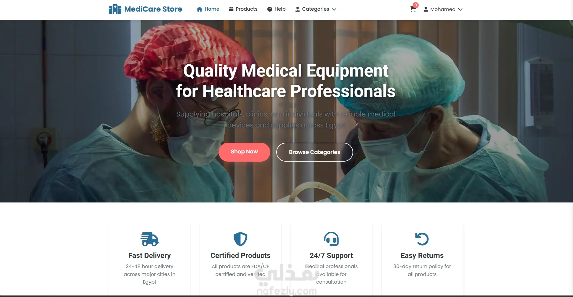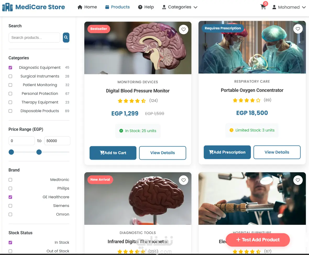 متجر إلكتروني للمعدات الطبية - Full Stack