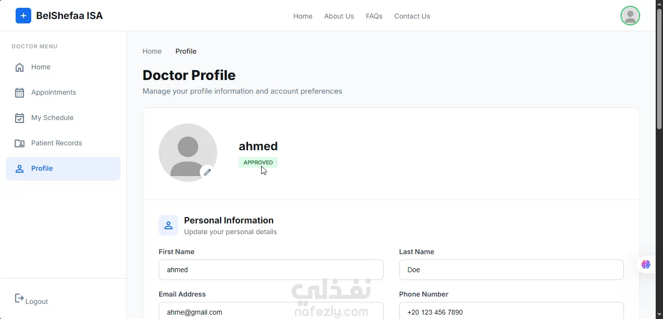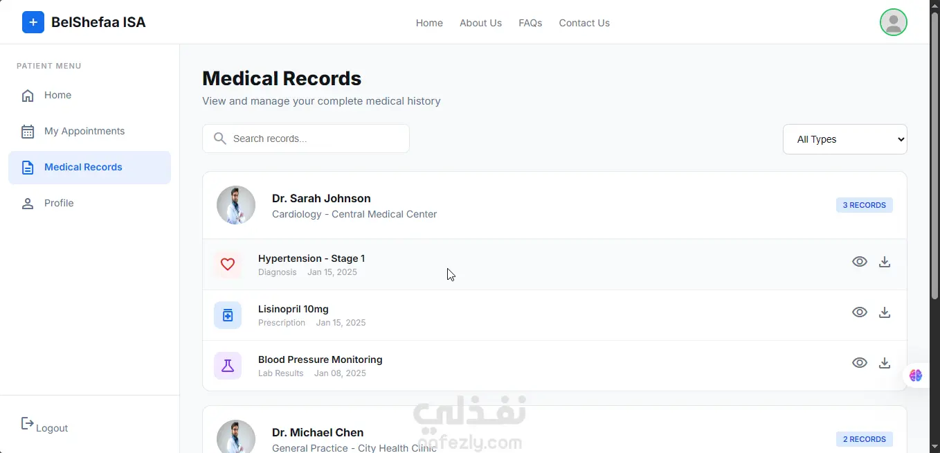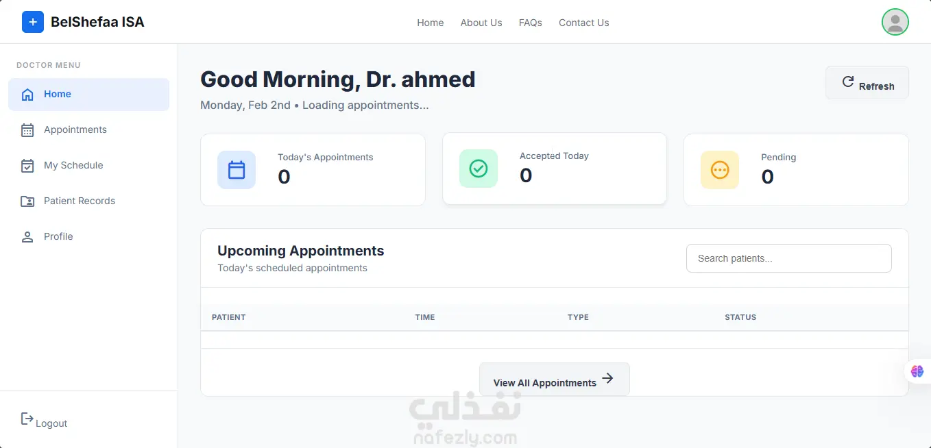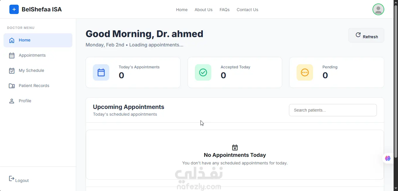 نظام إدارة رعاية صحية (BelShefaa ISA) لحجز المواعيد وإدارة العيادات