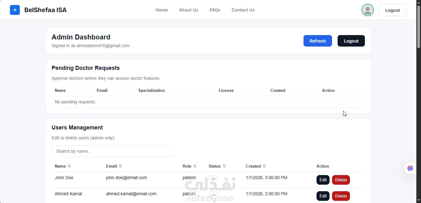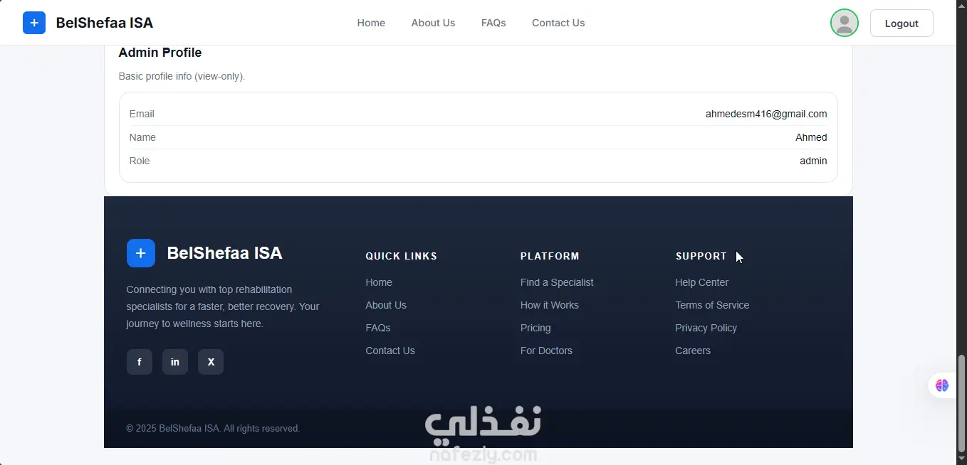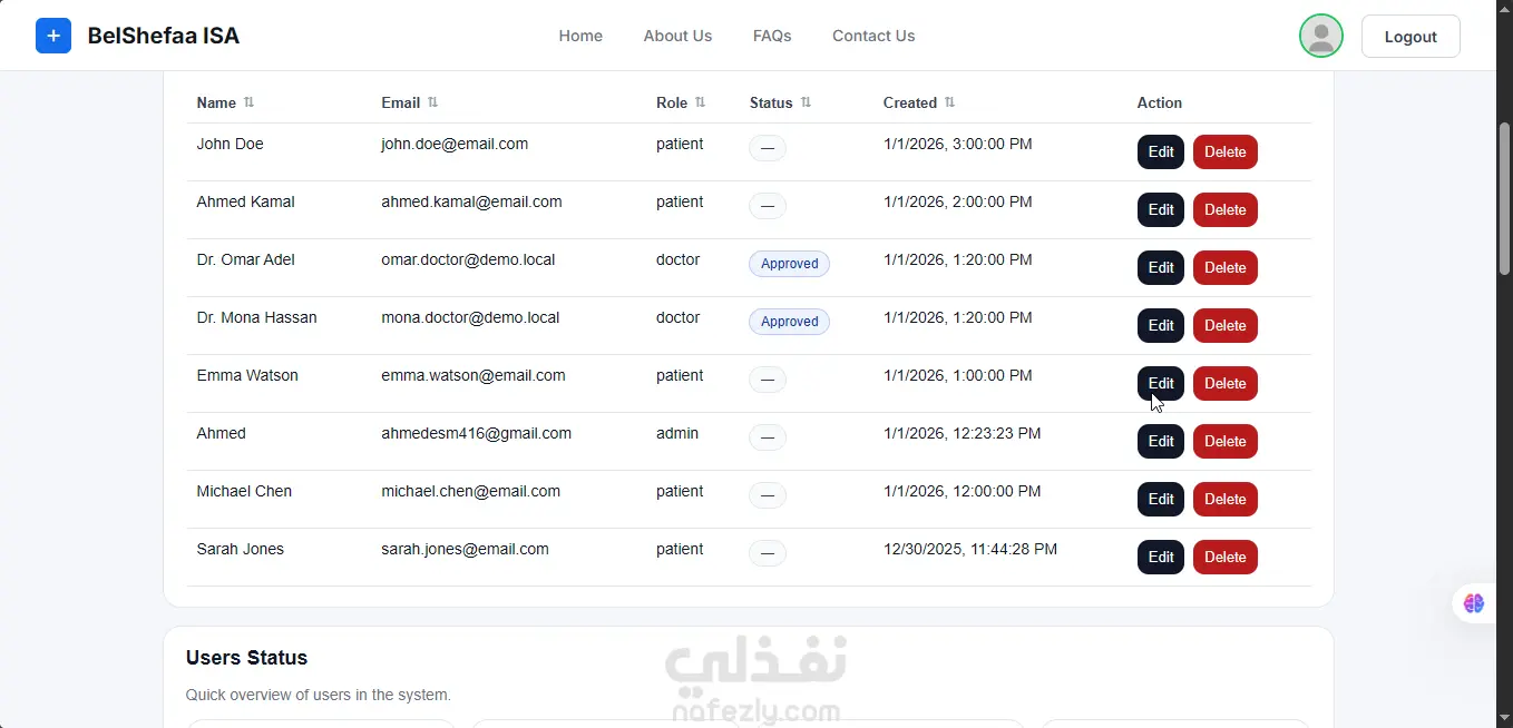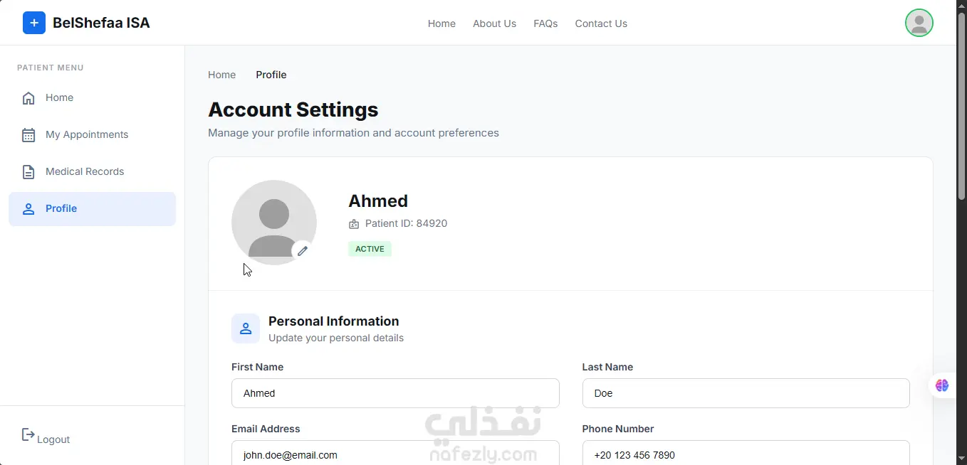 نظام إدارة رعاية صحية (BelShefaa ISA) لحجز المواعيد وإدارة العيادات