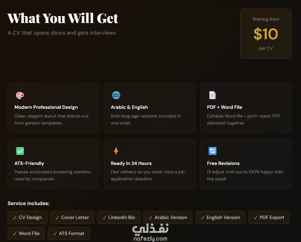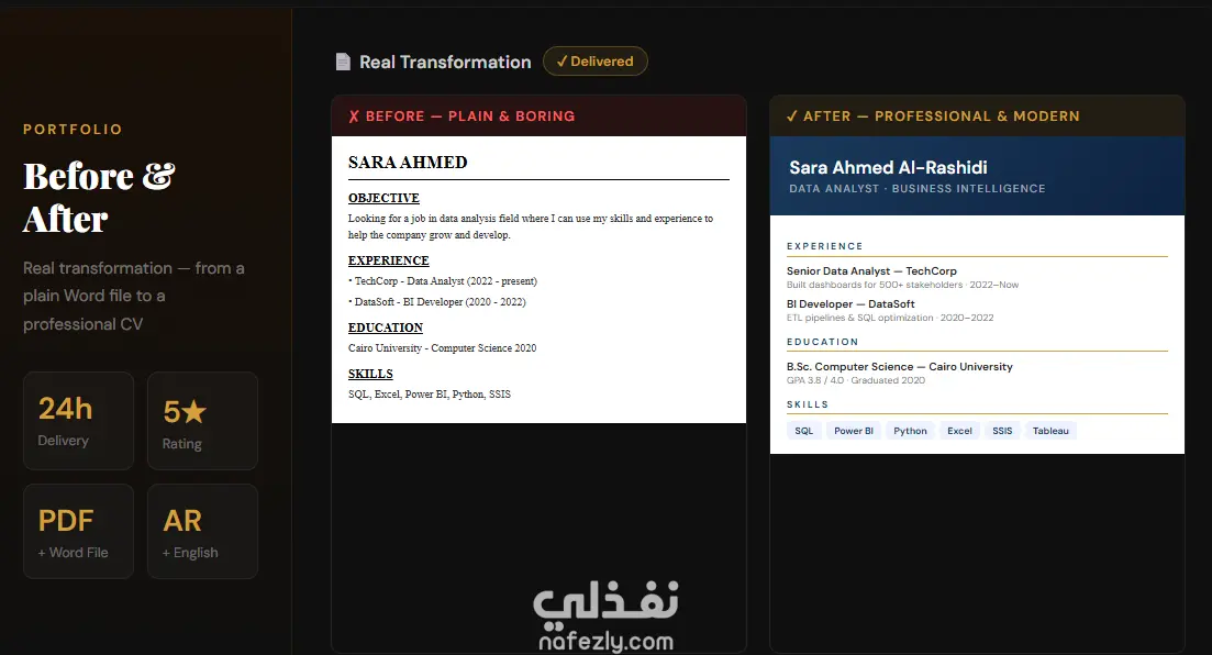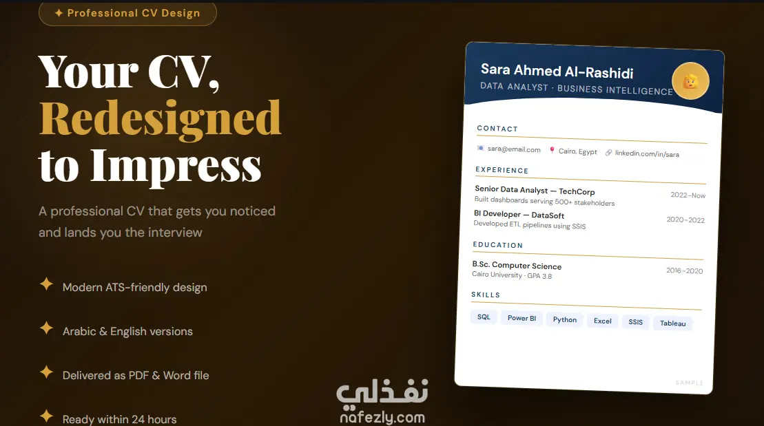 سأصمم لك سيرة ذاتية احترافية بالعربي والإنجليزي