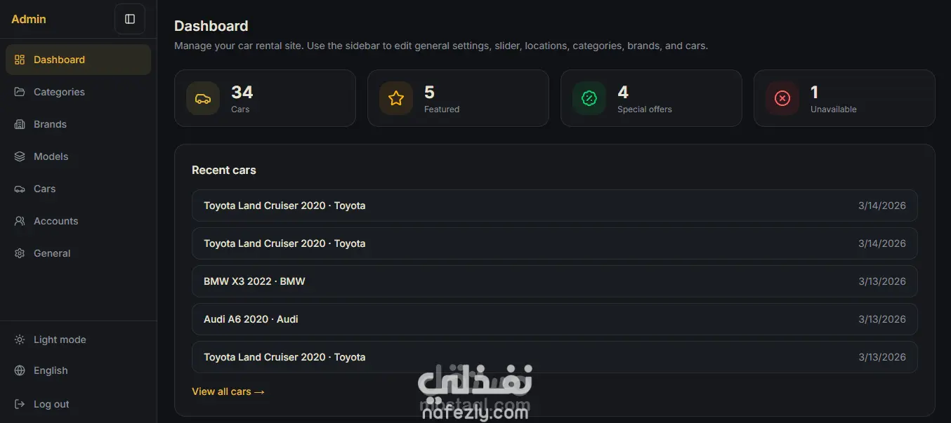 سهولة الحجز والتواصل: واجهة مستخدم بسيطة تتيح لكم تصفح السيارات حسب الفئة أو العلامة التجارية، مع إمكانية الحجز السريع عبر "واتساب" أو الاتصال المباشر.