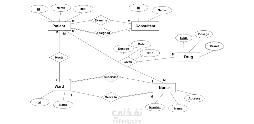قمت بتحليل وتصميم قاعدة بيانات لنظام طبي يربط بين المرضى (Patients)، الاستشاريين (Consultants)، وطاقم التمريض (Nurses). مميزات التصميم: هيكلة العلاقة بين المرضى والأدوية (Drugs) مع تحديد الجرعات والمواعيد. إدارة توزيع الغرف (Wards) وإشراف التمريض عليها. ضمان تكامل البيانات (Data Integrity) وتجنب التكرار لضمان دقة السجلات الطبية.