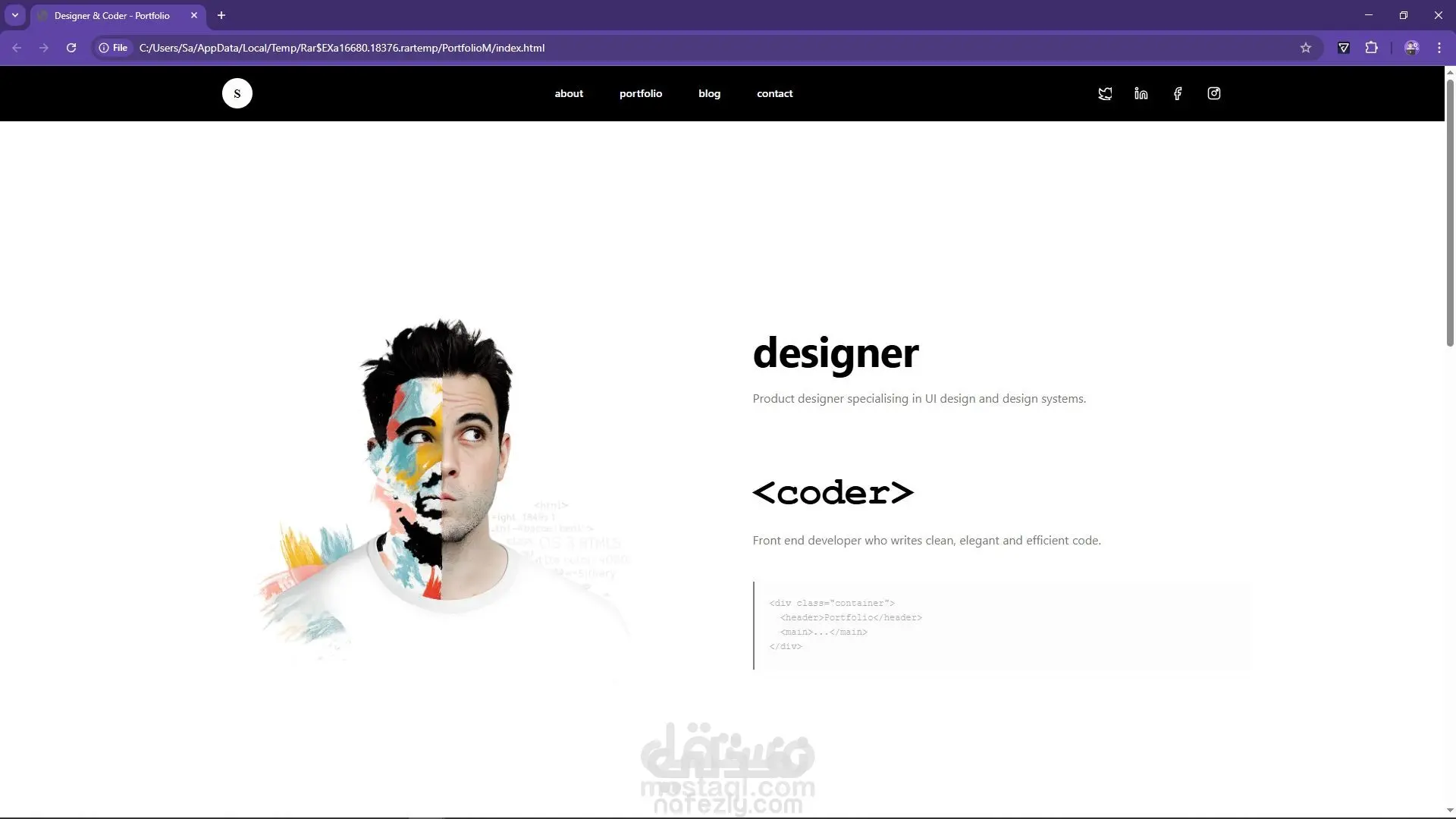 موقع بورتفوليو شخصي قمت بتصميمه وتنفيذه لعرض مهاراتي وأعمالي في تطوير الواجهات الأمامية. ركّزت على بساطة التصميم، تنظيم المحتوى، وتجربة مستخدم سلسة على جميع الأجهزة.