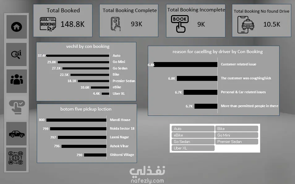 في هذا المشروع، قمت بتحويل قاعدة بيانات ضخمة ومعقدة لرحلات أوبر (Uber Dataset) إلى لوحة تحكم (Dashboard) تفاعلية بالكامل، توفر رؤية ثاقبة لأداء العمليات وتوجهات السوق.