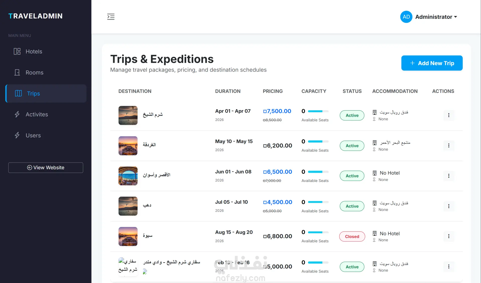 TravelGo هو نظام ويب متكامل مصمم لتبسيط عملية التخطيط للرحلات وحجز الفعاليات الترفيهية. يجمع الموقع بين سهولة التصفح وقوة المعالجة البرمجية، حيث يتيح للمستخدمين استكشاف الوجهات السياحية، حجز الرحلات، وإدارة جداولهم الزمنية في منصة واحدة آمنة ومستقرة. المميزات التقنية (Core Architecture): التقنيات المستخدمة: تم بناء المشروع باستخدام ASP.NET Core MVC مع الاعتماد على Entity Framework Core لإدارة قواعد البيانات. إدارة الحجوزات: نظام ذكي لمعالجة عمليات الحجز (Booking Engine) يمنع التضارب في المواعيد ويحدث حالة التوفر لحظياً. البحث المتقدم: محرك بحث مرن يتيح للمستخدم الفلترة حسب (الوجهة، نوع النشاط، السعر، والتقييم). لوحة تحكم الإدارة (Admin Dashboard): واجهة خلفية قوية تمنح مدير الموقع سيطرة كاملة على (إضافة وجهات جديدة، تعديل الأسعار، ومتابعة إحصائيات الحجوزات والعملاء). نظام العضوية (Identity): حماية كاملة لبيانات المسافرين مع ميزة "تاريخ الحجوزات" لكل مستخدم. أقسام الموقع (User Experience): بوابة الوجهات (Destinations): عرض جذاب للصور والمعلومات السياحية لكل مدينة أو نشاط. نظام التقييم والآراء: قسم مخصص لتعليقات المسافرين لزيادة الموثوقية (Social Proof). سلة الرحلات (Travel Cart): إمكانية تجميع أكثر من نشاط أو رحلة ودفع قيمتها في عملية واحدة. التجاوب الكامل (Responsive Design): الموقع مهيأ للعمل بكفاءة على الهواتف الذكية لمساعدة المسافرين أثناء تنقلهم. لماذا يعتبر TravelGo نموذجاً مثالياً لعملك القادم؟ الربط مع APIs: المشروع جاهز للربط مع بوابات الدفع (مثل Stripe) أو خدمات الخرائط (Google Maps) لتحديد مواقع الفعاليات. Clean Architecture: الكود منظم بطريقة تسمح بإضافة "نظام طيران" أو "حجز فنادق" لاحقاً دون هدم البنية الأساسية. تحليل البيانات: الموقع يوفر تقارير بسيطة لصاحب العمل توضح أكثر الوجهات طلباً، مما يساعد في اتخاذ قرارات تسويقية ذكية.