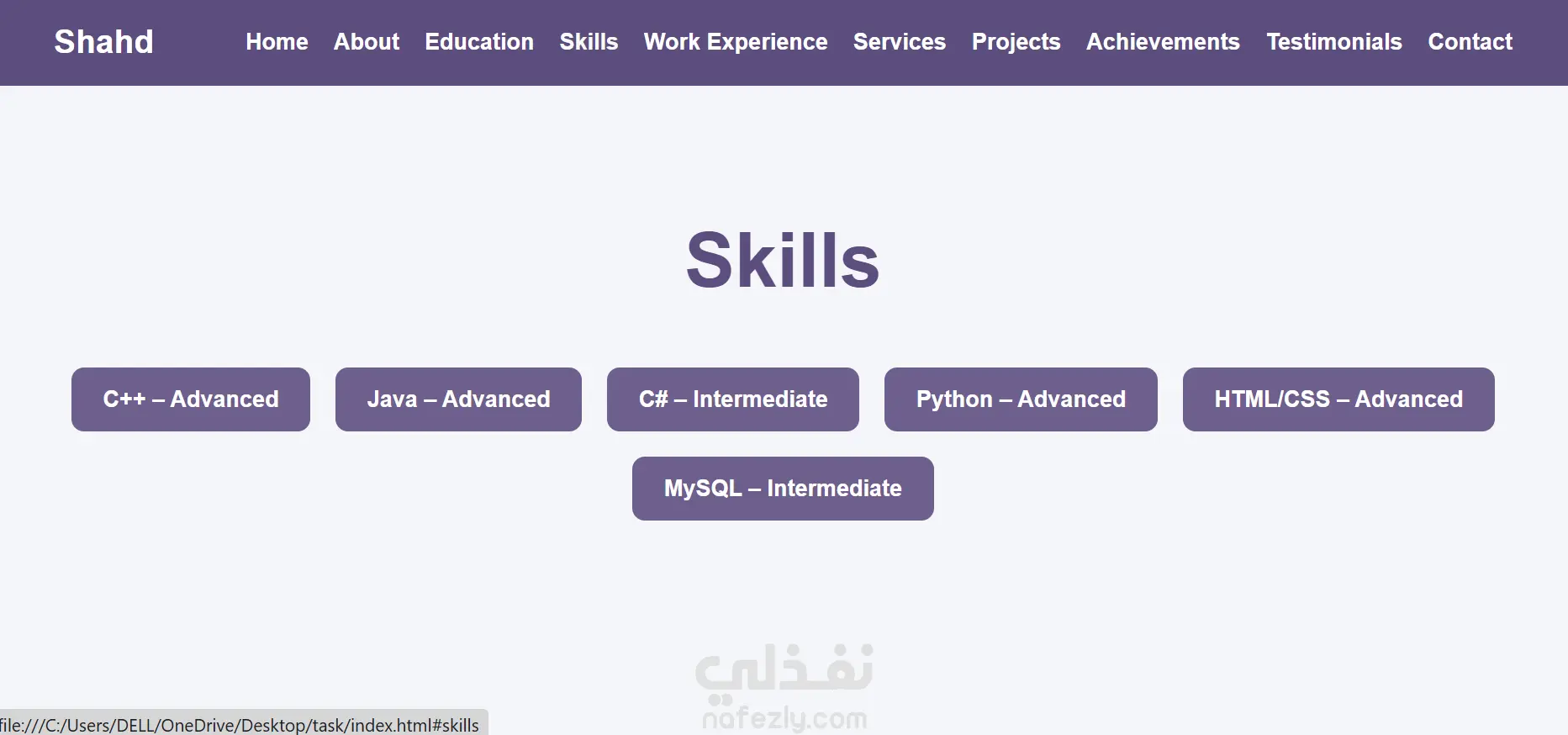 تصميم وتطوير موقع بورتفوليو شخصي باستخدام HTML و CSS و JavaScript