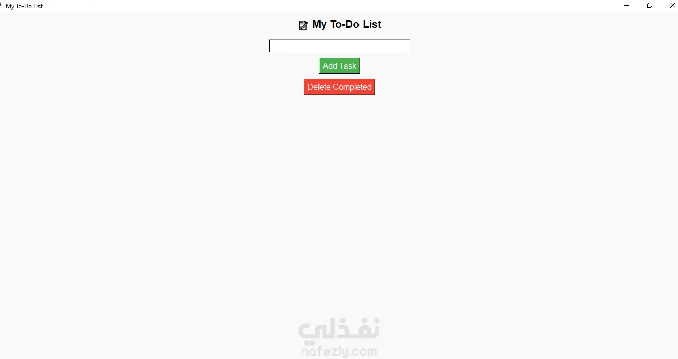 وصف المشروع: إضافة وحذف وتعديل المهام. تحديد حالة المهمة (تم / لم يتم). حفظ البيانات في ملف أو قاعدة بيانات بسيطة. مميزات إضافية: واجهة رسومية باستخدام Tkinter أو نسخة ويب بسيطة باستخدام Flask. التقنيات: بايثون Tkinter