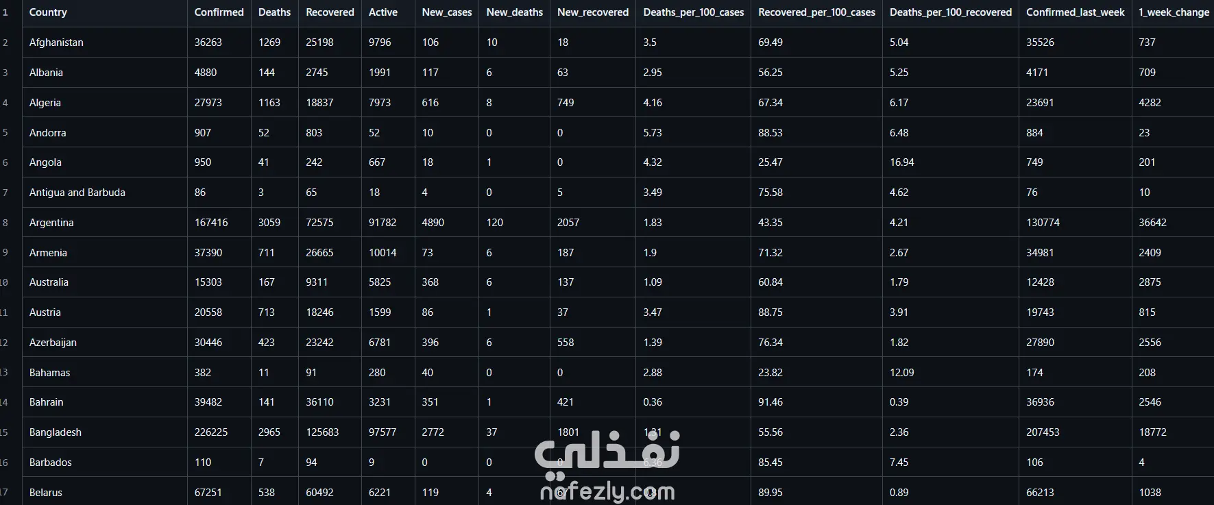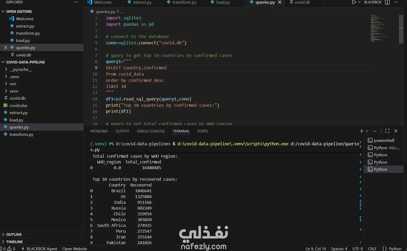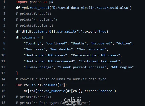 قمت ببناء خط أنابيب بيانات متكامل يقوم بجمع ومعالجة وتحليل بيانات كوفيد-19 لتوفير رؤى دقيقة وقابلة للاستخدام.