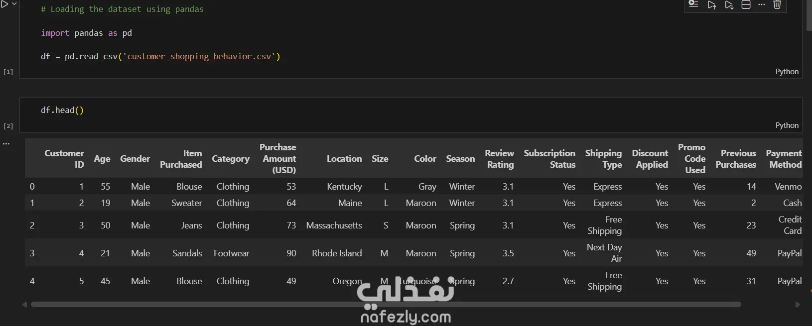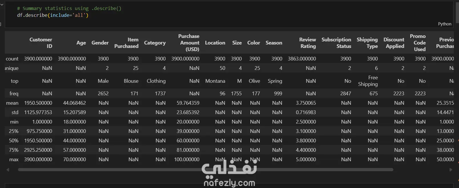 مشروع احترافي يهدف إلى تحليل سلوك العملاء باستخدام بيانات تضم أكثر من 3900 عملية شراء، بهدف فهم أنماط الشراء وتفضيلات العملاء.