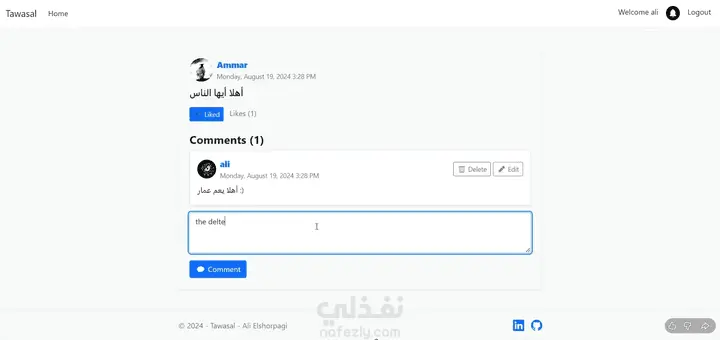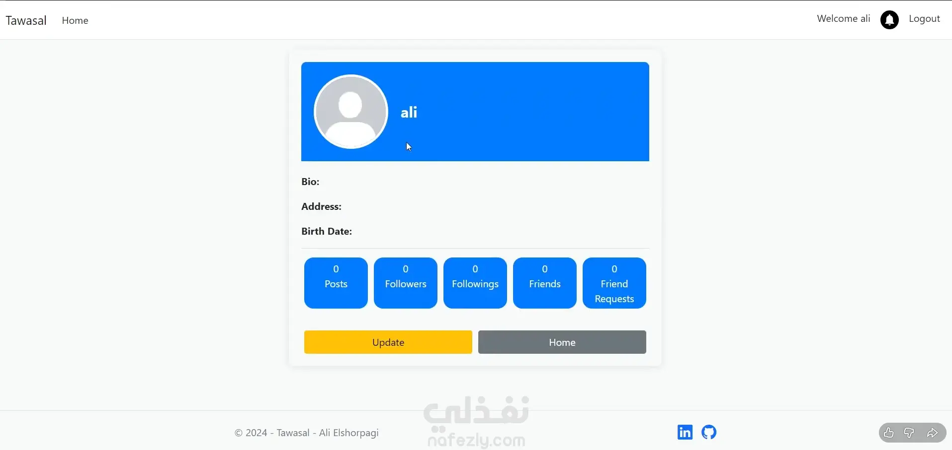 Tawasal هو مشروع تطبيق ويب لمنصة تواصل اجتماعي تم تطويرها باستخدام نمط MVC، وتهدف إلى تمكين المستخدمين من إنشاء حسابات شخصية، نشر المحتوى، والتفاعل مع الآخرين من خلال الإعجابات والتعليقات بطريقة منظمة وآمنة.