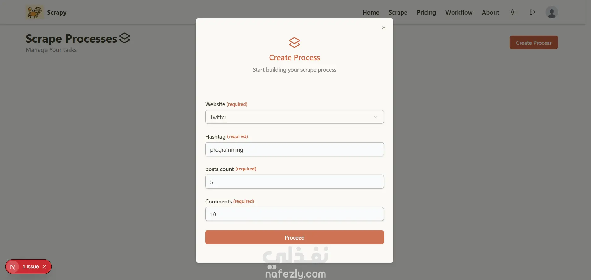 - جمع البيانات تلقائيًا عبر Scrapy من المنصات بما في ذلك المنشورات والهاشتاجات ذات الصلة.