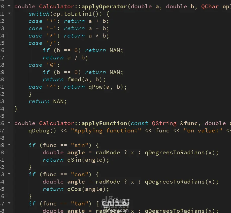 يوفر التطبيق مجموعة متكاملة من العمليات الحسابية الأساسية والمتقدمة، مع تصميم أنيق وبسيط يسهّل على المستخدم إجراء العمليات بسرعة ودقة. كما يعتمد على هيكل برمجي منظم وقابل للتوسّع، مما يتيح إضافة ميزات جديدة مستقبلًا بسهولة.
