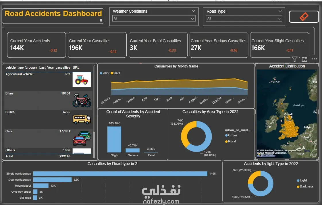 التحليل الجغرافي والزمني لحوادث الطرق (Road Traffic Accidents Analytics Dashboard)