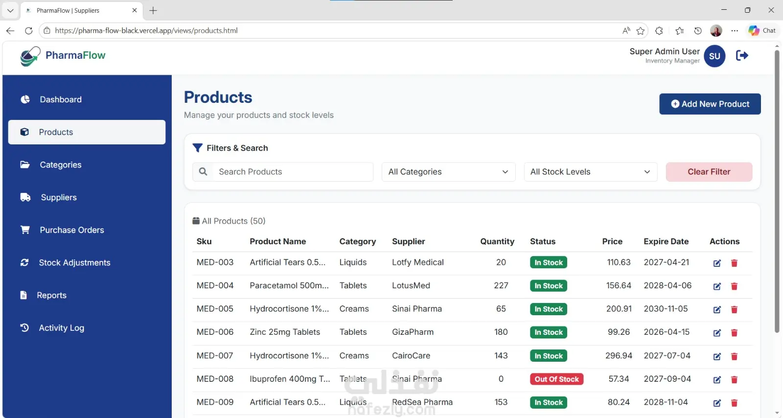 تصميم وتطوير نظام متكامل لإدارة المخزن والصيدليات – Pharma Flow