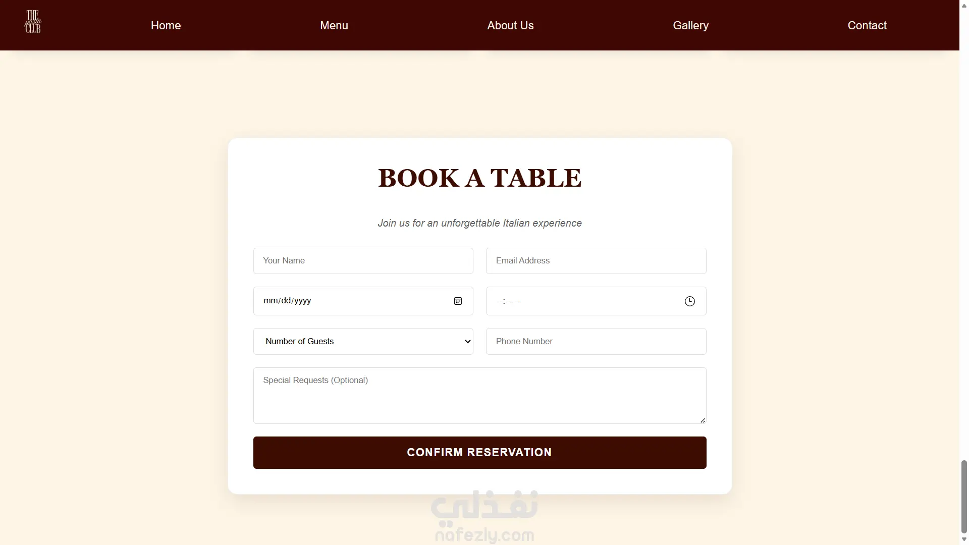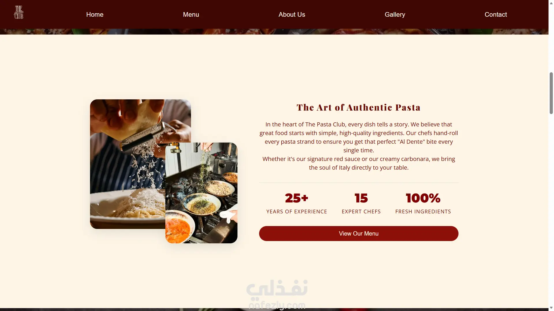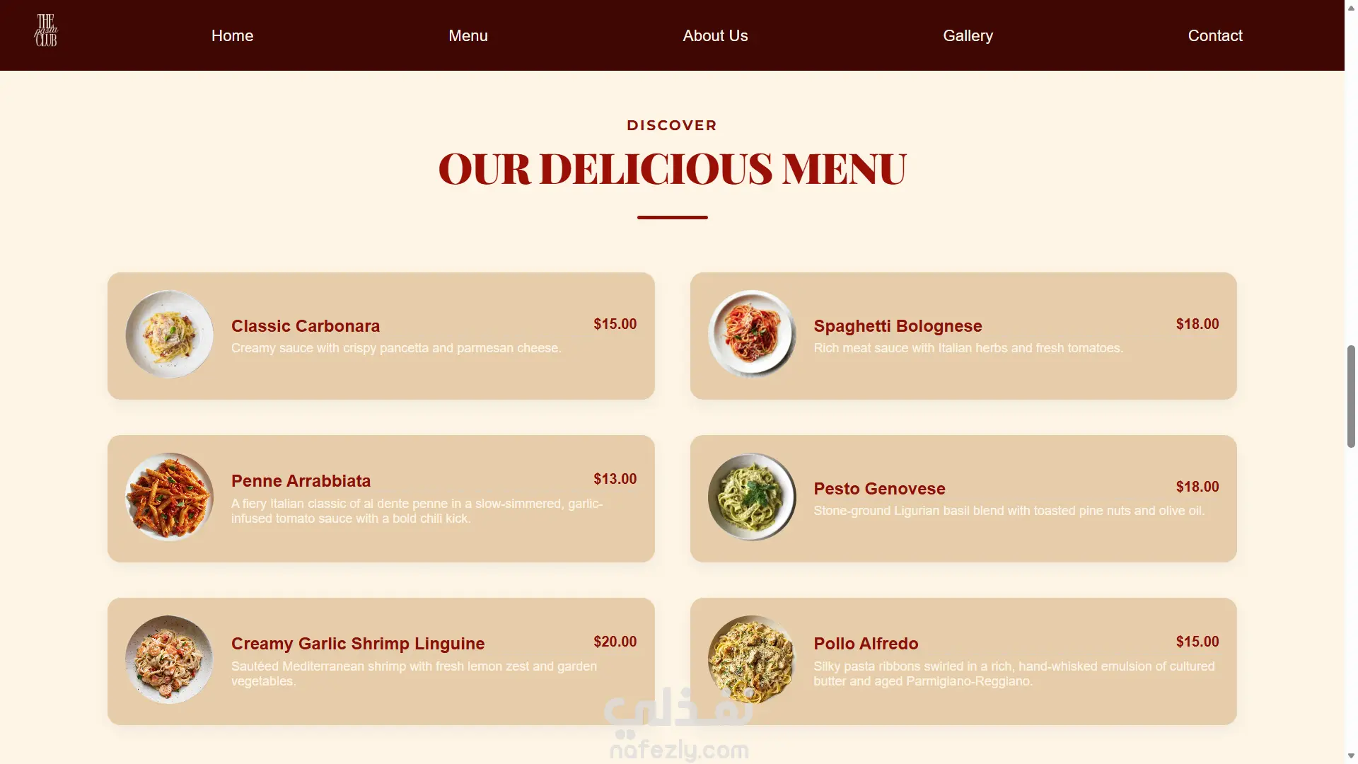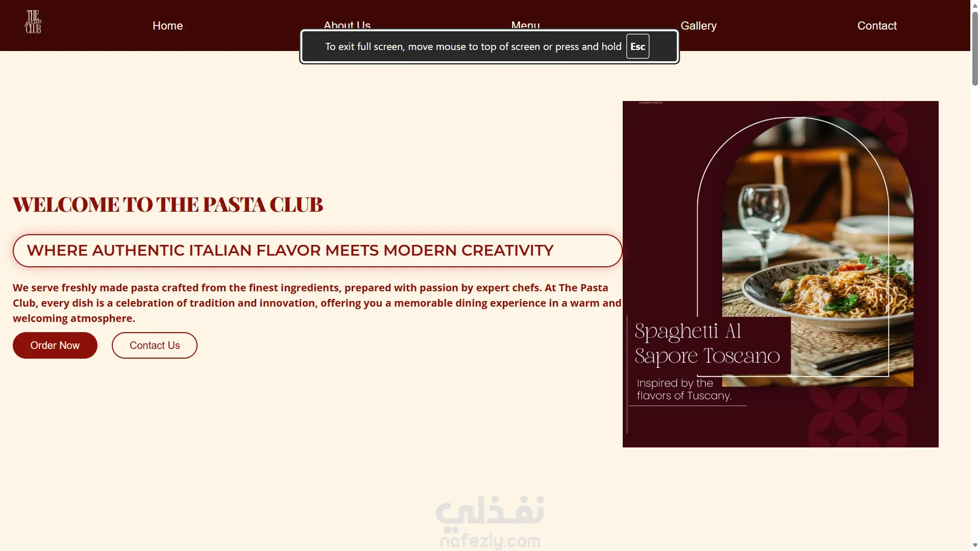تصميم وبرمجة موقع مطعم "The Pasta Club" متوافق مع جميع الشاشات