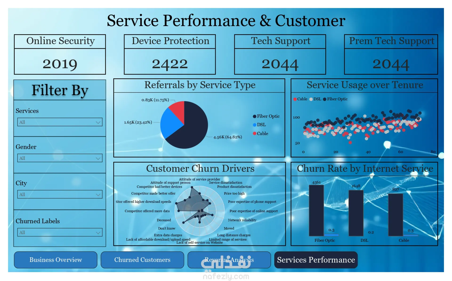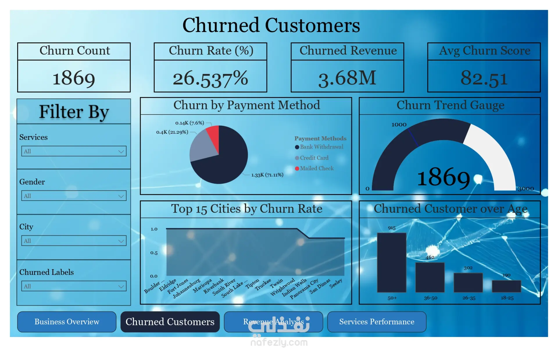 يساعد التحليل الشركات على اتخاذ قرارات مبنية على البيانات لتقليل معدل فقدان العملاء وتحسين استراتيجيات الاحتفاظ بهم.