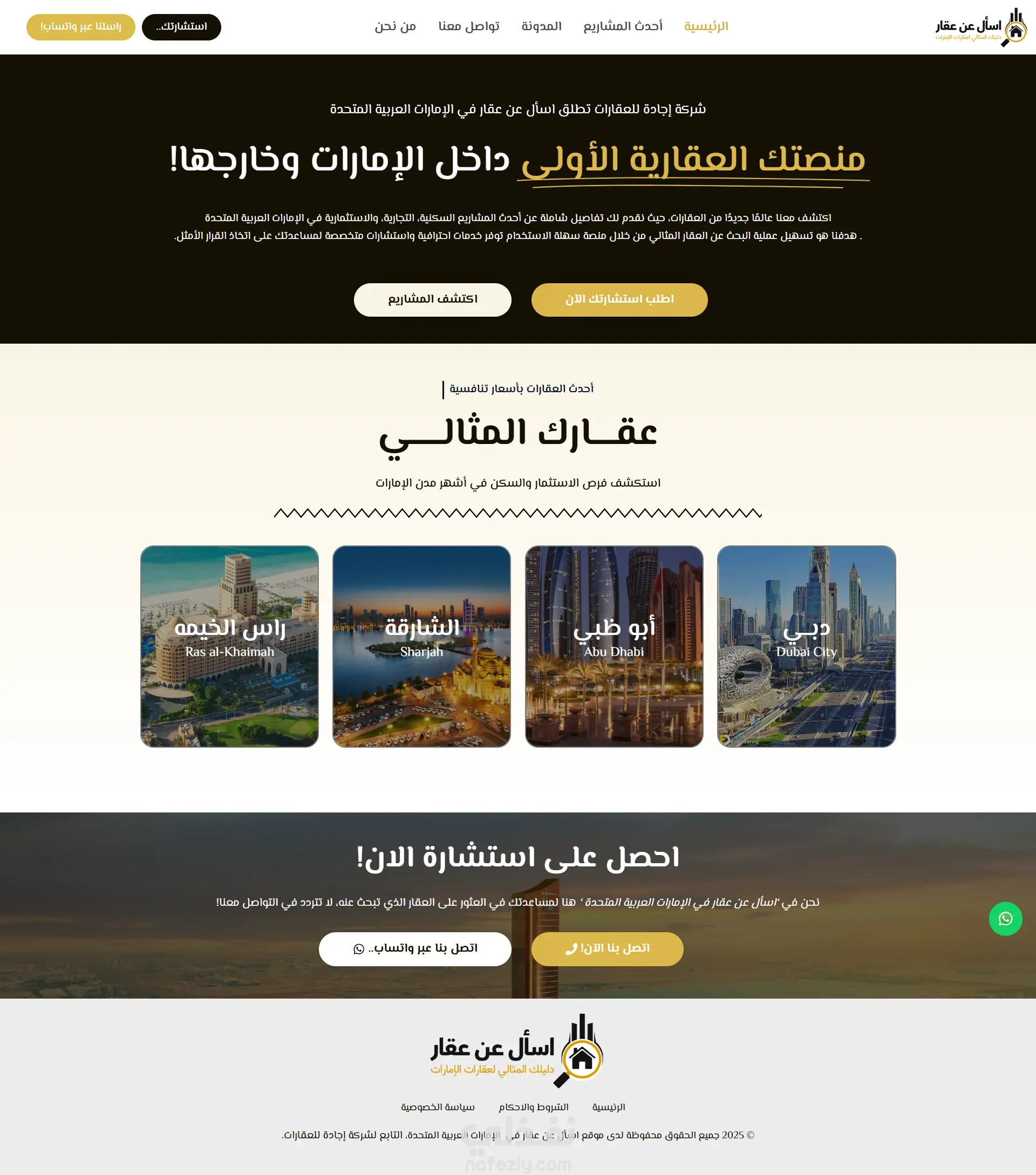 موقع عقاري تم تصميمه وتطويره باستخدام ووردبريس، مع التركيز على تجربة المستخدم وسهولة التصفح، بالإضافة إلى عرض احترافي للعقارات وتحسين الأداء وتهيئة الموقع لمحركات البحث.