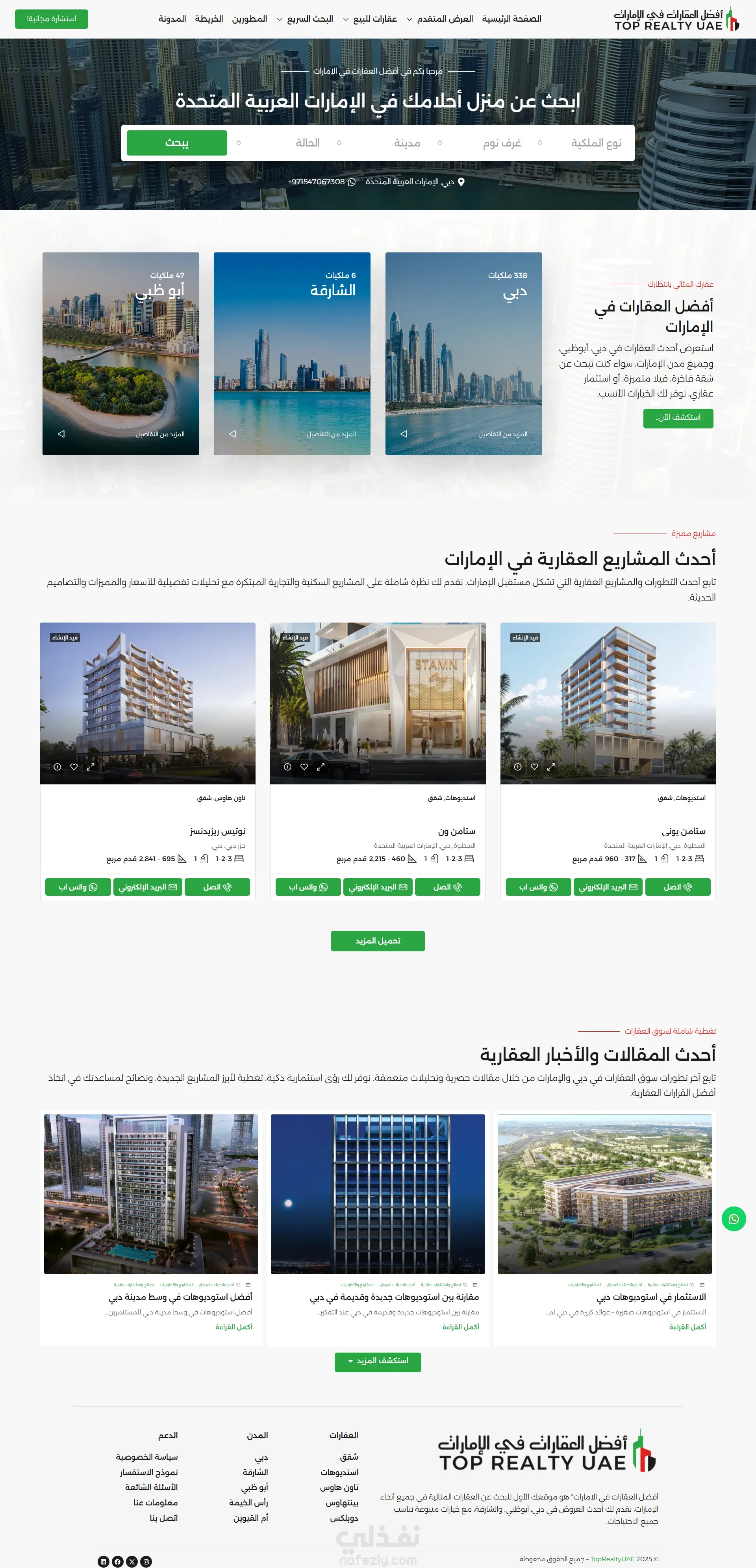 منصة عقارية متكاملة في الإمارات تم تصميمها وتطويرها باستخدام ووردبريس، مع التركيز على تجربة مستخدم سلسة، وبحث متقدم، وعرض احترافي للمشاريع العقارية.