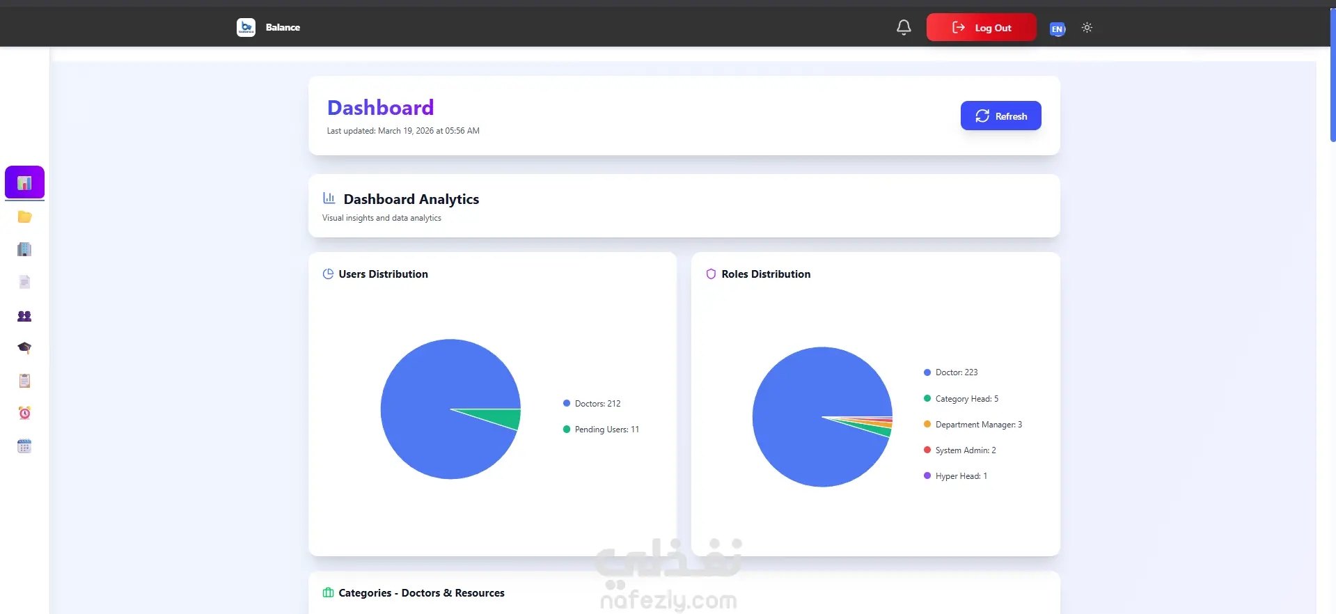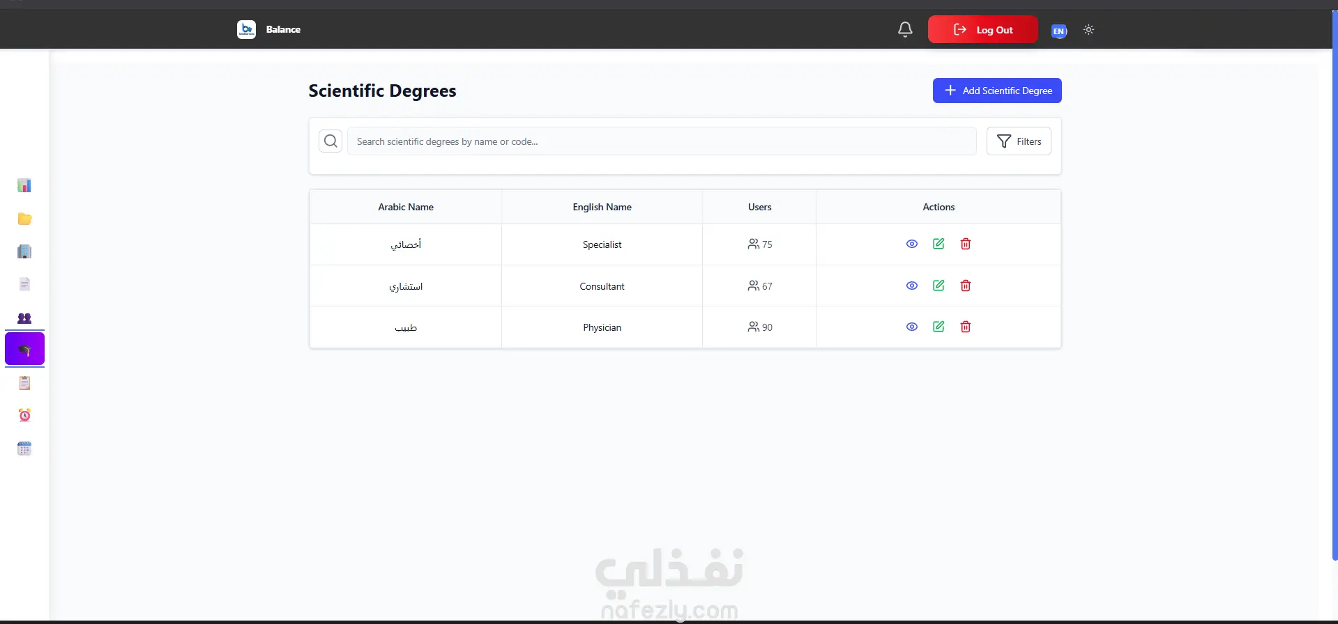 إدارة جداول المناوبات للطاقم الطبي عبر عدة مستويات وظيفية.