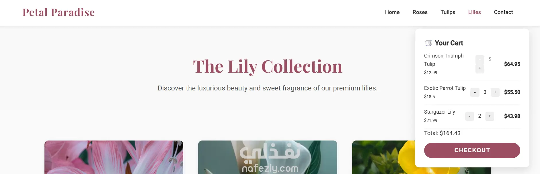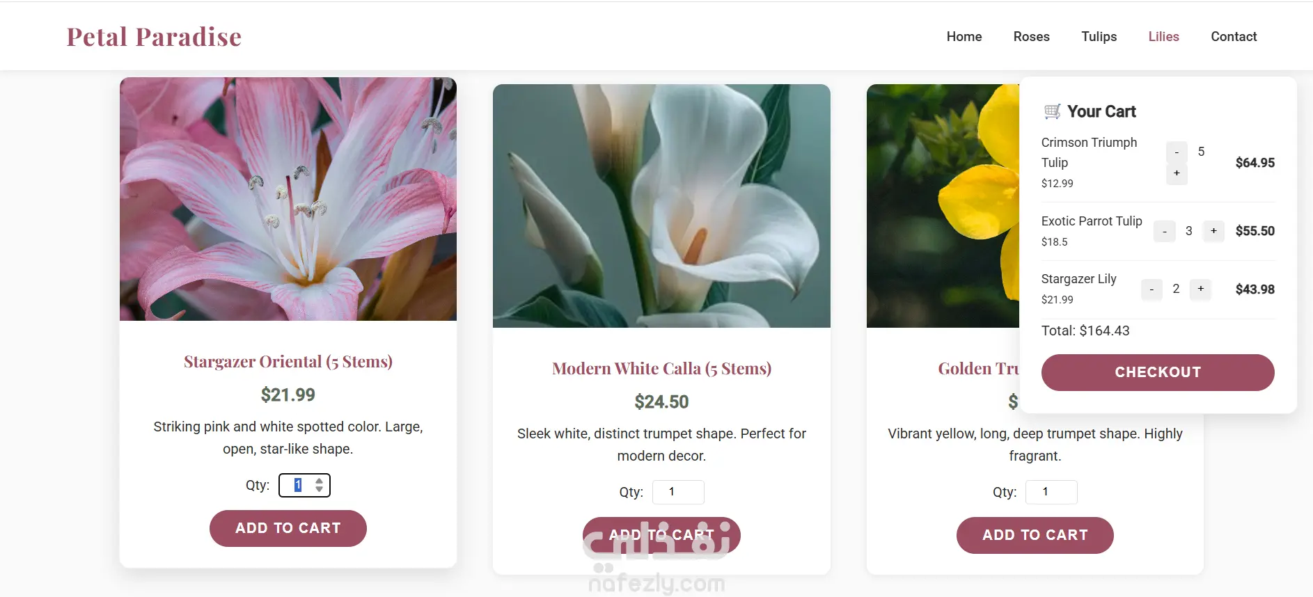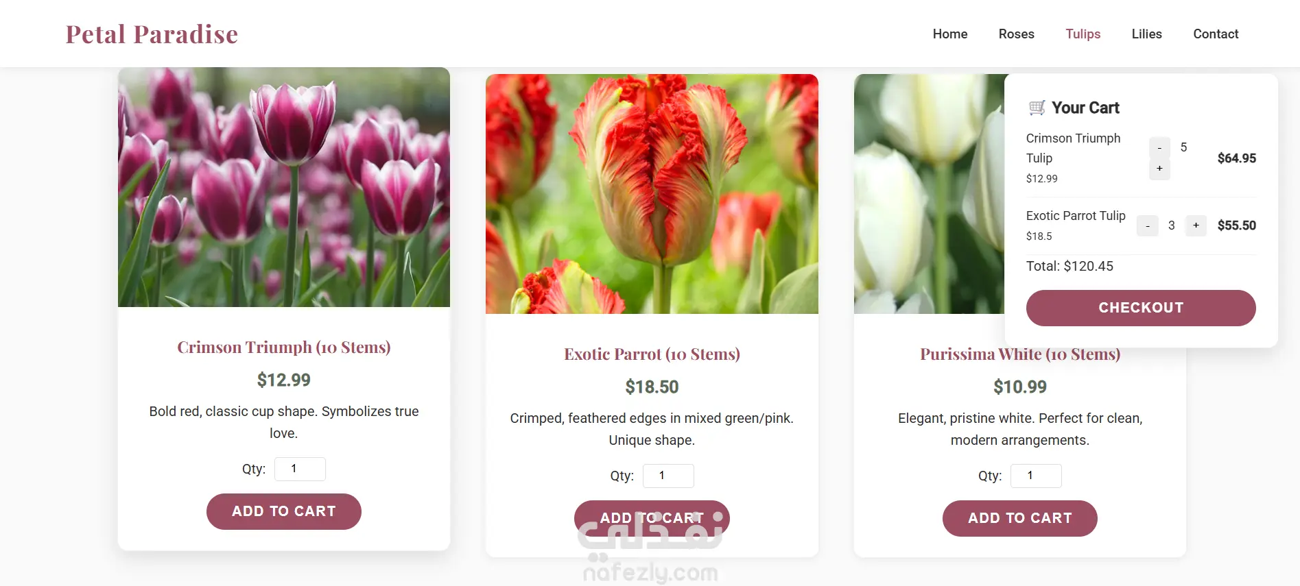 تصميم وتطوير واجهة متجر زهور (Petal Paradise)