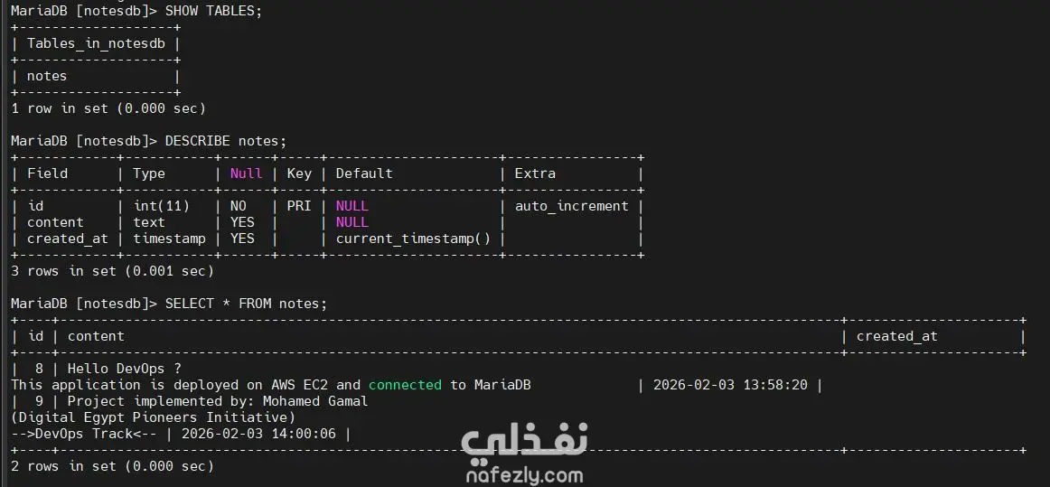 قمت بتطوير ونشر تطبيق ويب لتدوين الملاحظات باستخدام لغة Python وإطار العمل Flask مع قاعدة بيانات MariaDB على خادم Linux عبر منصة AWS EC2. يتيح التطبيق للمستخدمين إضافة وحفظ وعرض الملاحظات من خلال واجهة ويب بسيطة وسهلة الاستخدام.