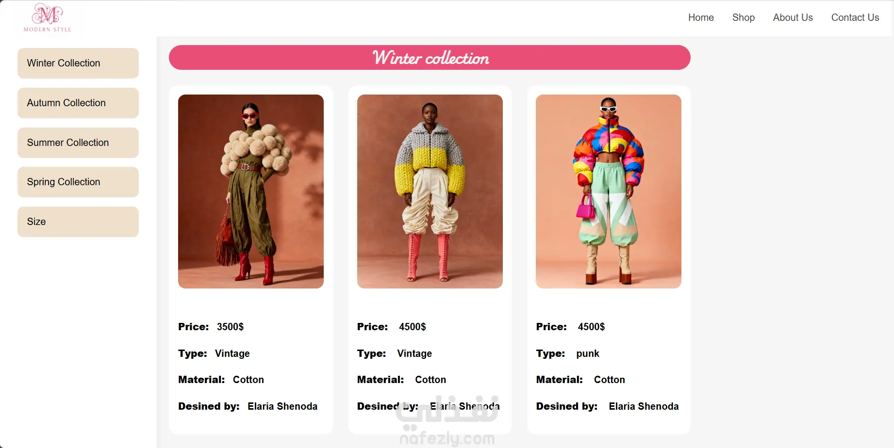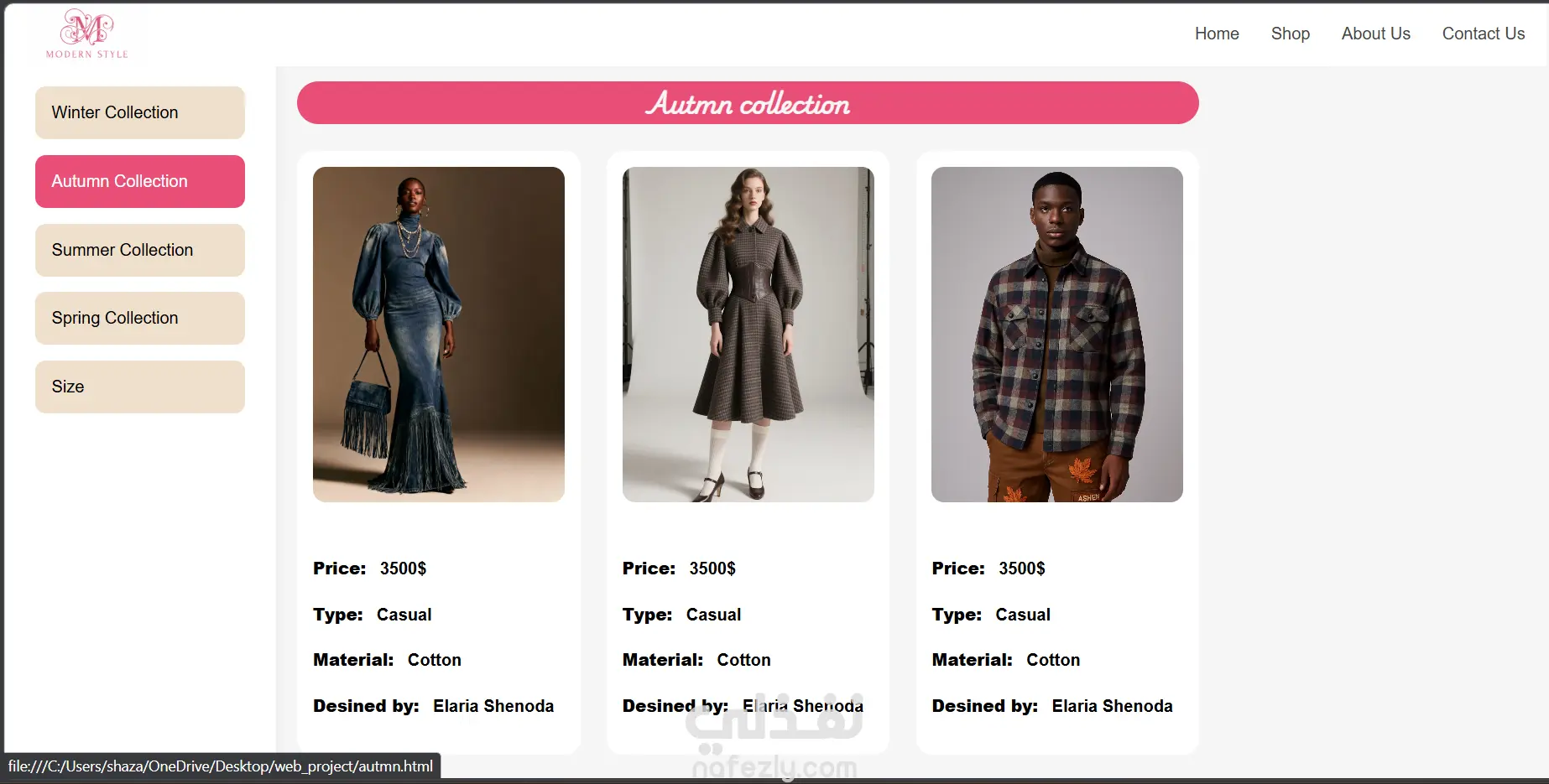 قمت بتصميم وتطوير موقع Modern Style وهو موقع تجارة إلكترونية لعرض منتجات الأزياء بطريقة عصرية وسهلة الاستخدام. الموقع يوفر تجربة مستخدم بسيطة وجذابة مع تصميم متجاوب يعمل على جميع الأجهزة (Desktop – Tablet – Mobile). المميزات: • واجهة مستخدم حديثة وجذابة • عرض المنتجات بشكل منظم • نظام قاعدة بيانات • صفحات رئيسية (Home – Shop – About – Contact) • تصميم متجاوب مع جميع الشاشات • كود منظم وسهل التعديل والتطوير التقنيات المستخدمة: • HTML5 • CSS3 • JavaScript • PHP • MySQL Database هذا المشروع يمثل نموذجًا لموقع متجر إلكتروني يمكن تطويره لاحقًا ليشمل نظام تسجيل المستخدمين وعمليات الدفع وإدارة الطلبات.