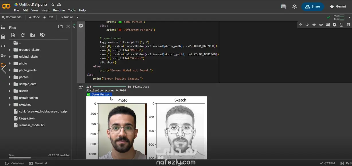 تم تدريب النموذج على مئات أزواج الصور (Sketch–Photo pairs).