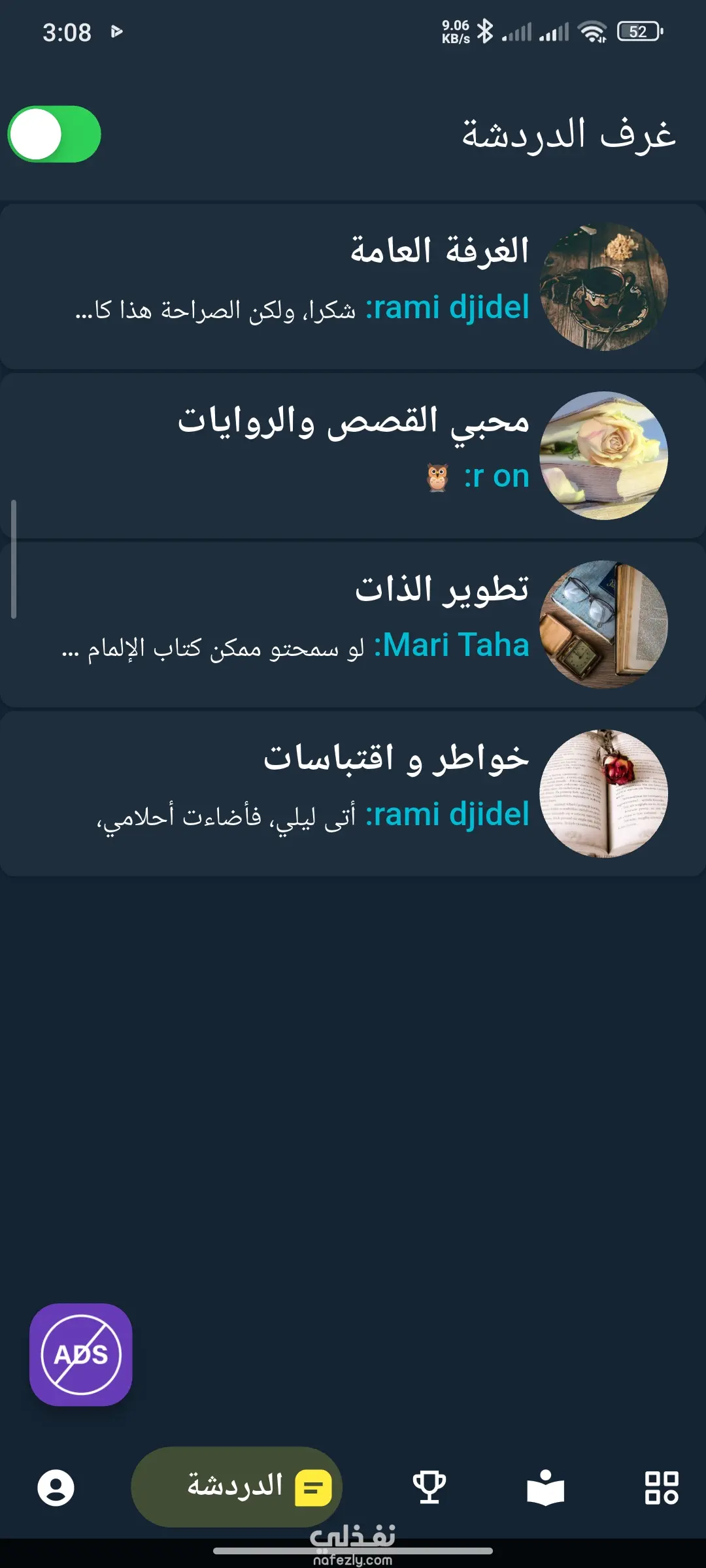 • أدوات تحكم متقدمة للدردشة (حظر مستخدمين، حذف رسائل) ومراجعة طلبات نشر الكتب.