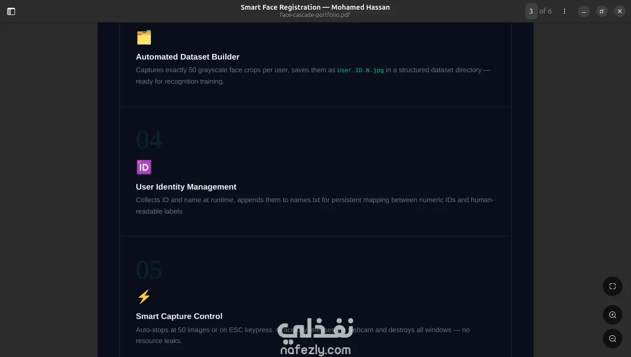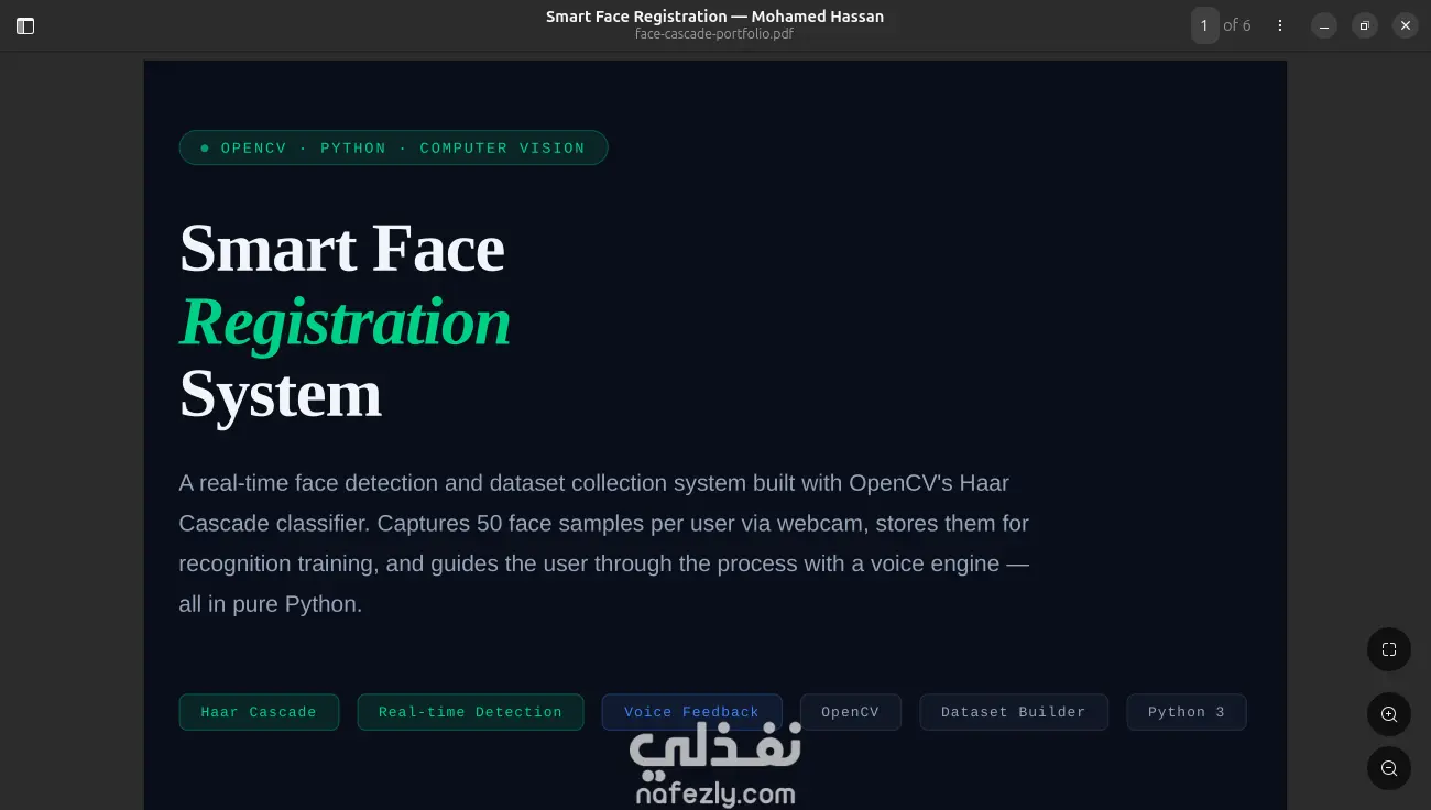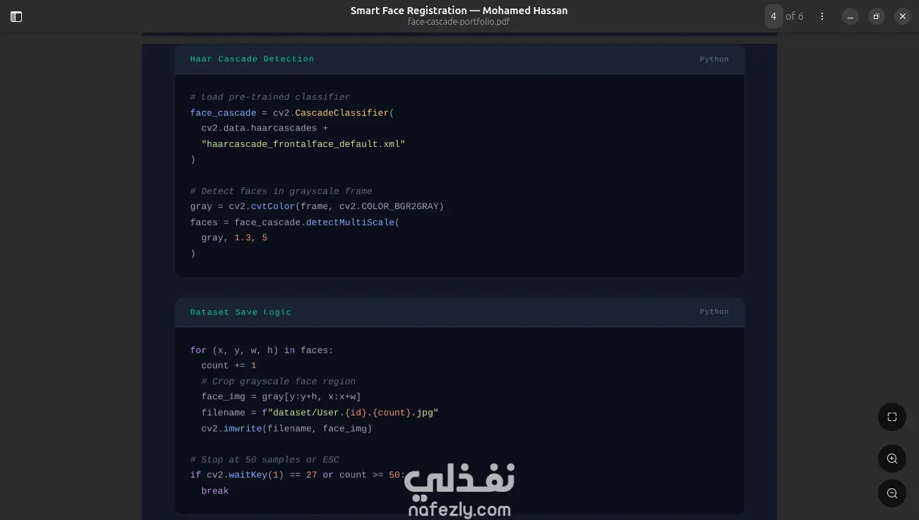A real-time face detection and dataset collection system built with OpenCV's Haar Cascade classifier. Captures 50 grayscale face samples per user via webcam, annotates the live feed with bounding boxes, and saves a structured dataset ready for recognition model training.