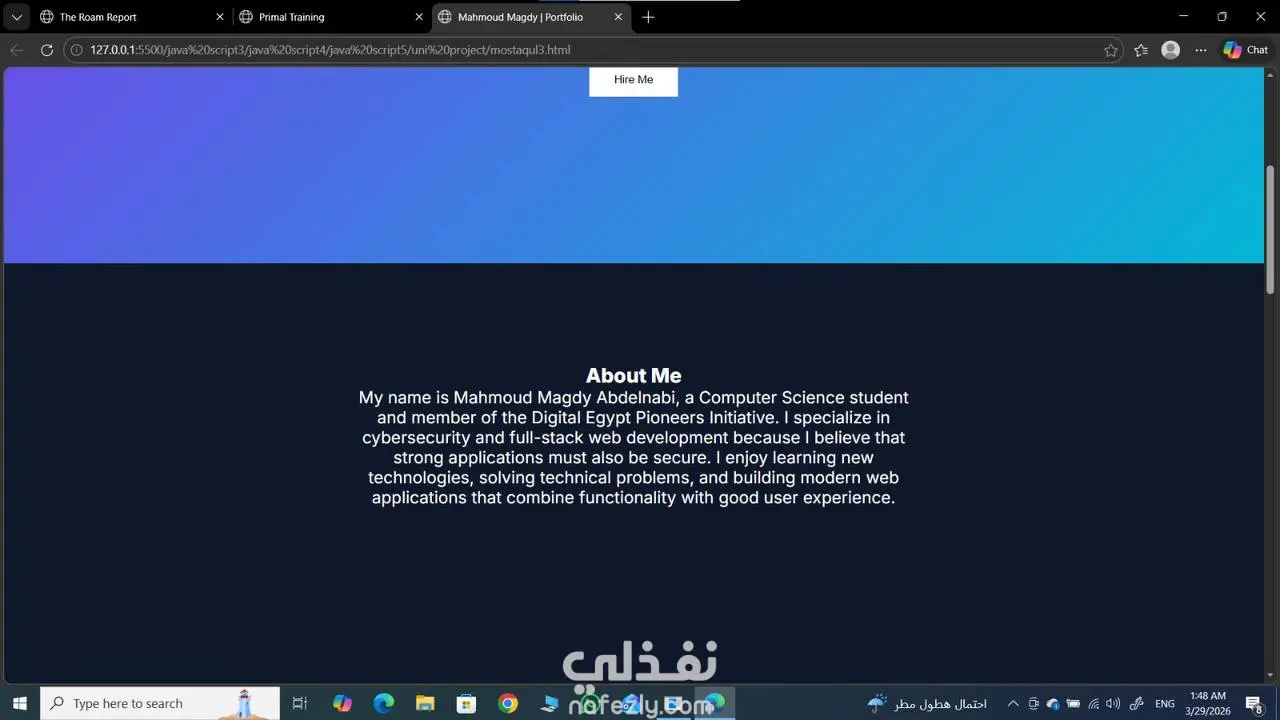تصميم موقع Portfolio شخصي احترافي لمطورين الويب والأمن السيبراني