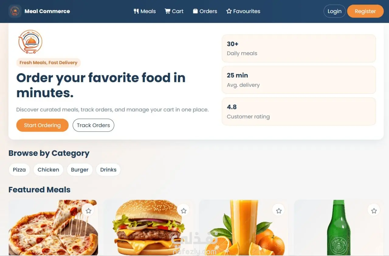 Designed RESTful APIs for authentication, meals, categories, cart, reviews, and orders. • Implemented JWT authentication with HTTP-only cookies and OTP workflows for email verification and password recovery. • Developed role-based access control (user/admin) and full cart and order management workflow. • Built admin analytics using MongoDB aggregation pipelines for order statistics, revenue insights, and operational analysis. • Integrated Cloudinary for image uploads and media storage using Multer. • Integrated an Angular client served through Express static middleware. • Technologies: Node.js, Express.js, MongoDB (Mongoose), JWT, Joi, Cloudinary, Angular.