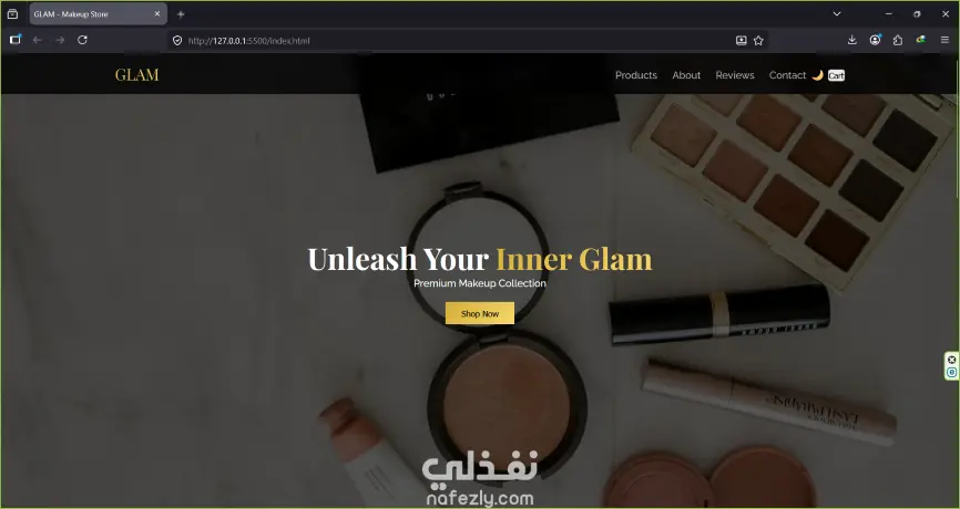 تصميم صفحة هبوط أنيقة وعصرية لمتجر مستحضرات تجميل فاخر. الصفحة تركّز على عرض المنتجات بشكل جذاب واحترافي مع تجربة مستخدم سلسة. تشمل الصفحة: