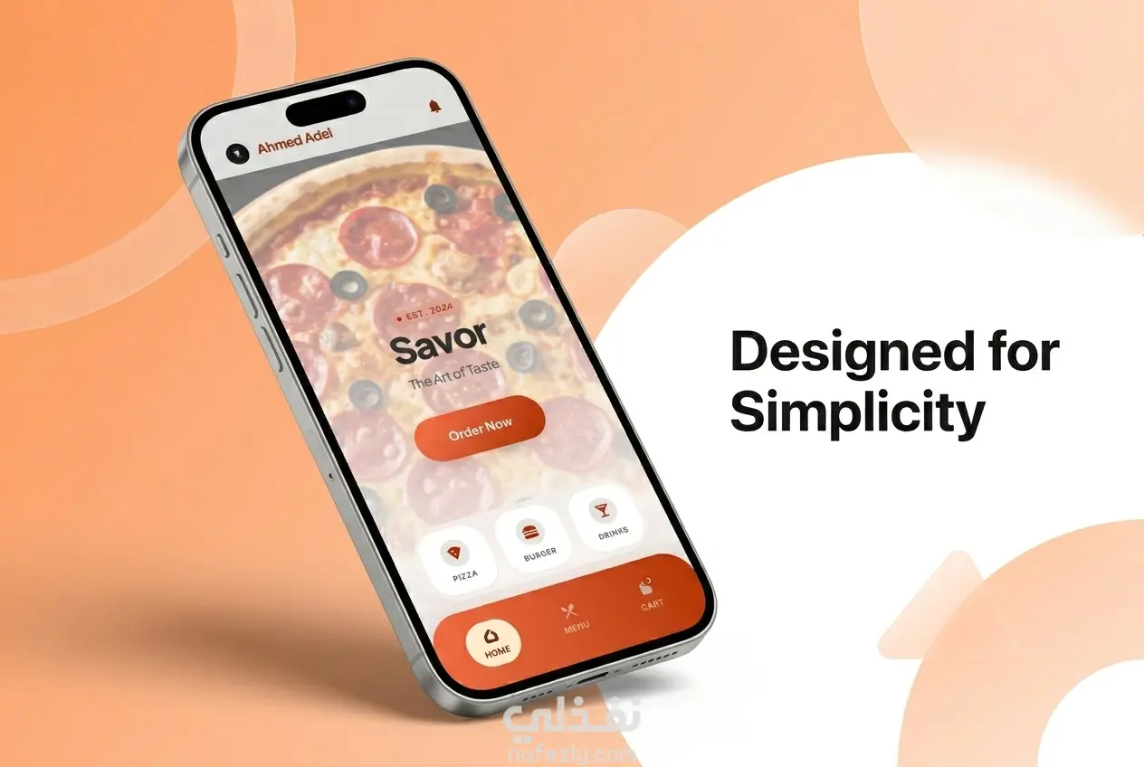 التصميم مناسب لأي مشروع: تطبيق مطاعم – توصيل طعام – متجر رقمي