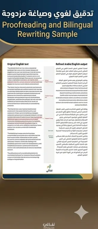 ثنائية اللغة: إتقان تام للترجمة الكتابية والصياغة بالإنجليزية بأسلوب طبيعي غير آلي.