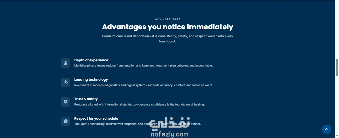 سأقدم لك Landing Page جاهزة للاستخدام للعيادات الطبية أو الخدمات الصحية، تحتوي على: - تصميم واجهة جذابة ومتجاوبة (Responsive) متوافق مع الهواتف والحواسيب. - نظام حجز مواعيد ذكي مع التحقق من صحة البيانات (Name, Email, Phone, Date, Service). - Dark Mode مع حفظ تفضيل المستخدم على Local Storage ومزامنة مع إعدادات النظام. - Animation & Reveal on Scroll لجعل الموقع ديناميكي وجذاب. - Toast Notifications لعرض رسائل النجاح أو الخطأ بشكل أنيق. - Preloader لتحسين تجربة المستخدم أثناء تحميل الصفحة. - شريط تقدم عند التمرير (Scroll Progress) وزر العودة للأعلى (Scroll-to-Top). - Accessibility: دعم كامل للـ aria attributes وFocus Management. - Tracking Events جاهزة لتوصيل Analytics (مثال على Google Analytics / Matomo). - Carousel للمراجعات/Testimonials مع تتبع الحركة. الموقع جاهز للتشغيل مباشرة ويمكن ربطه بخدمات Backend لاحقًا لتلقي بيانات المواعيد