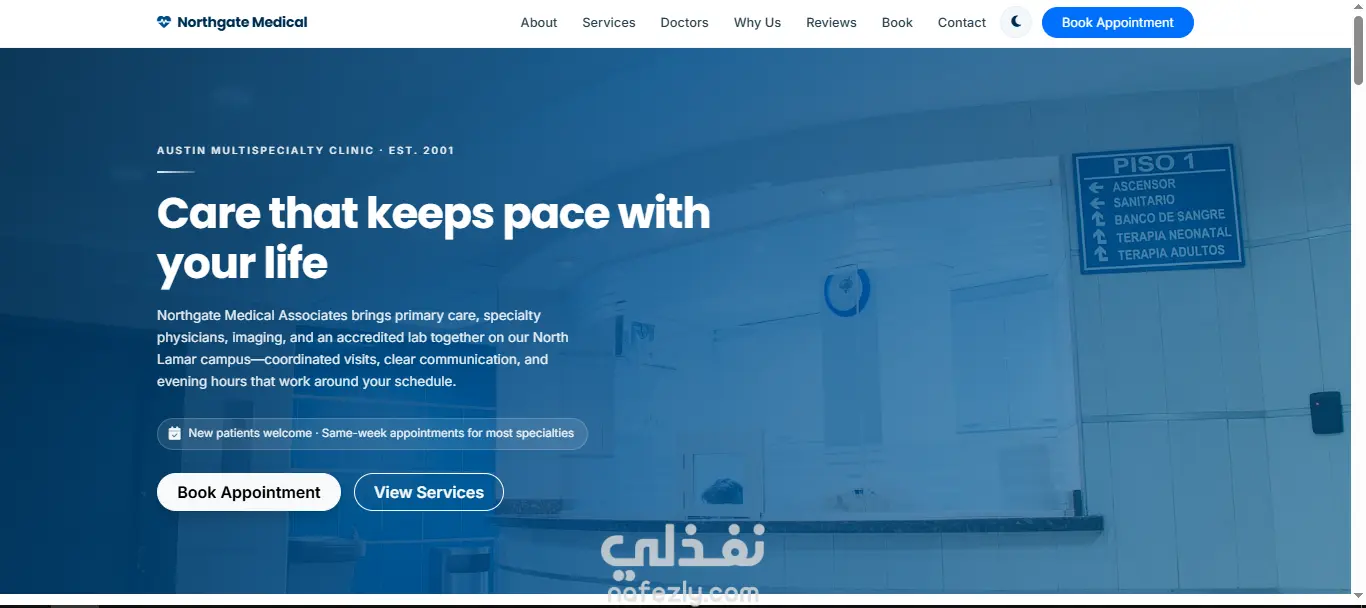 تصميم Landing Page احترافية للعيادات الطبية مع Dark Mode ونظام حجز مواعيد تفاعلي