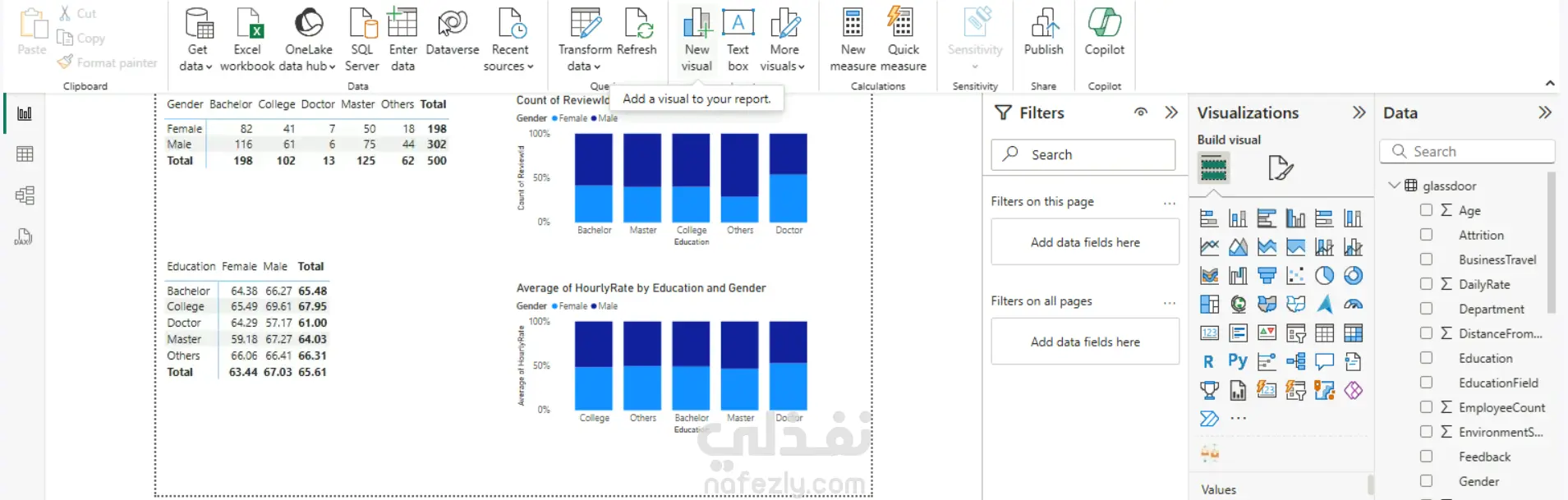 - تحليل متغيرات تصنيفية متعددة معًا، مع التركيز على تفاعل الجنس والتعليم مع الأجر بالساعة