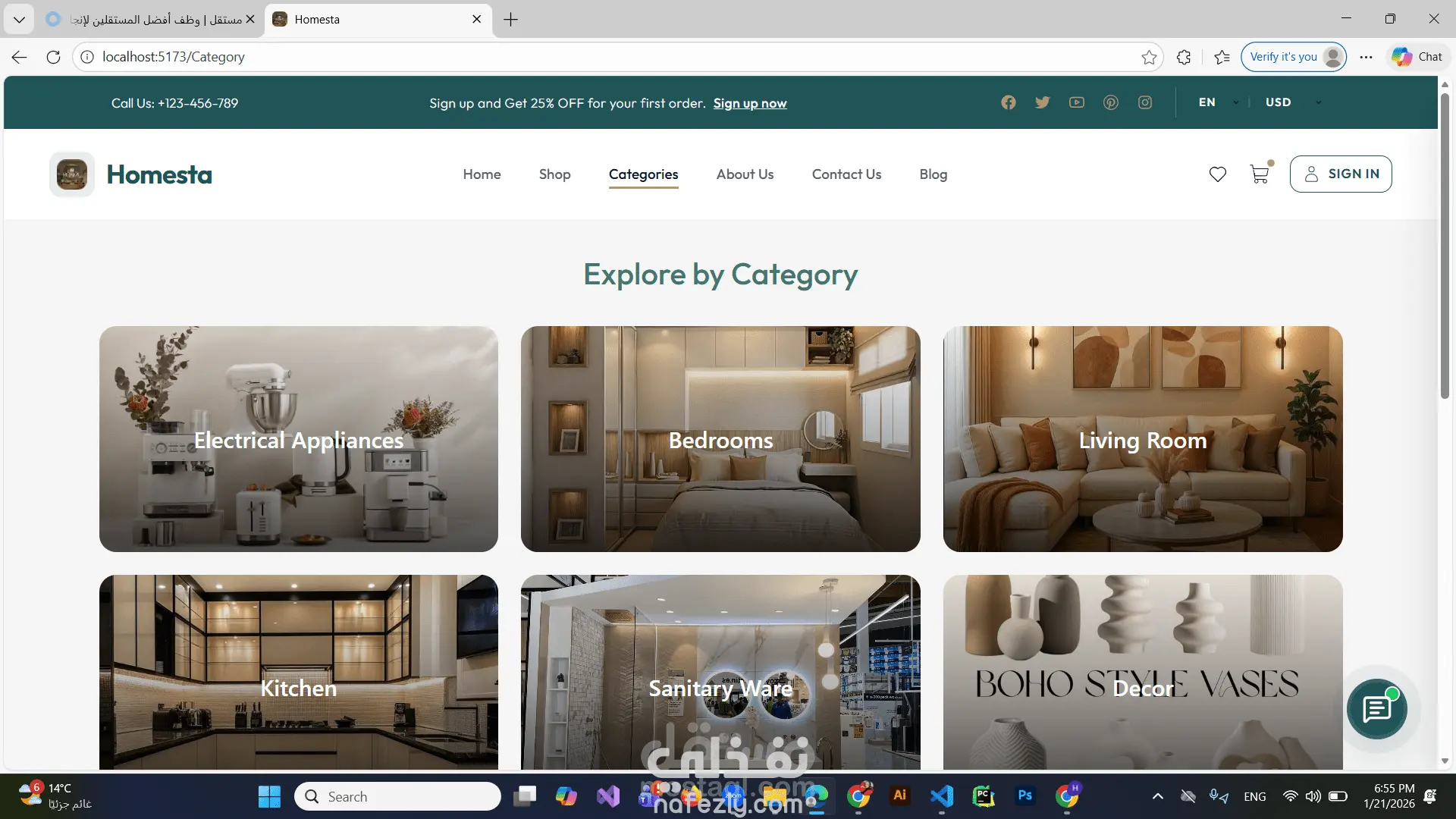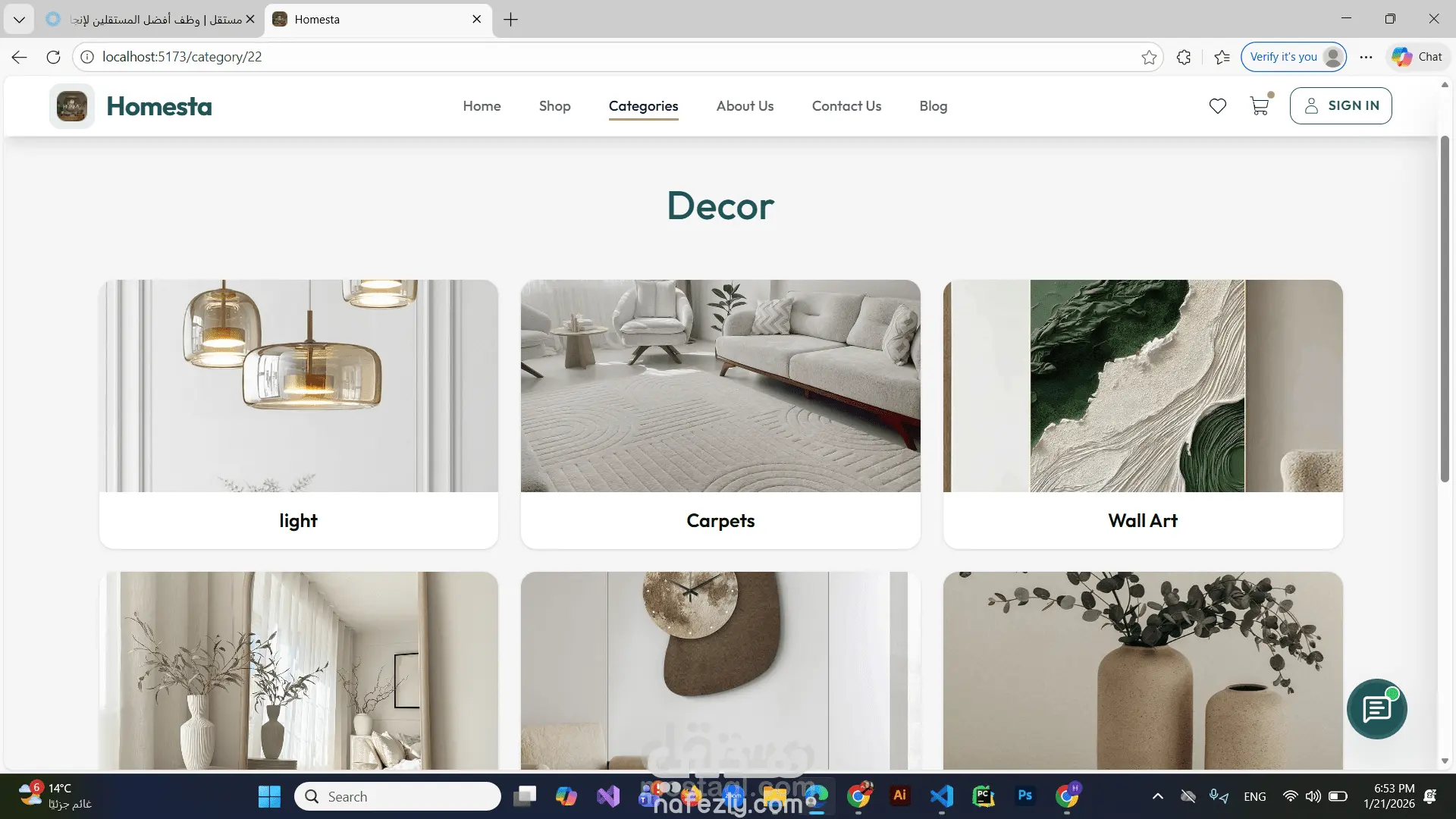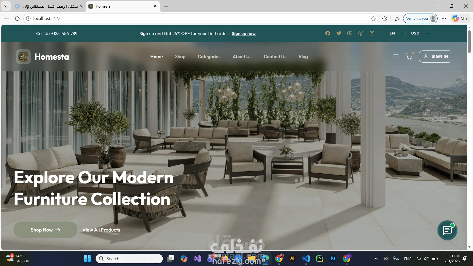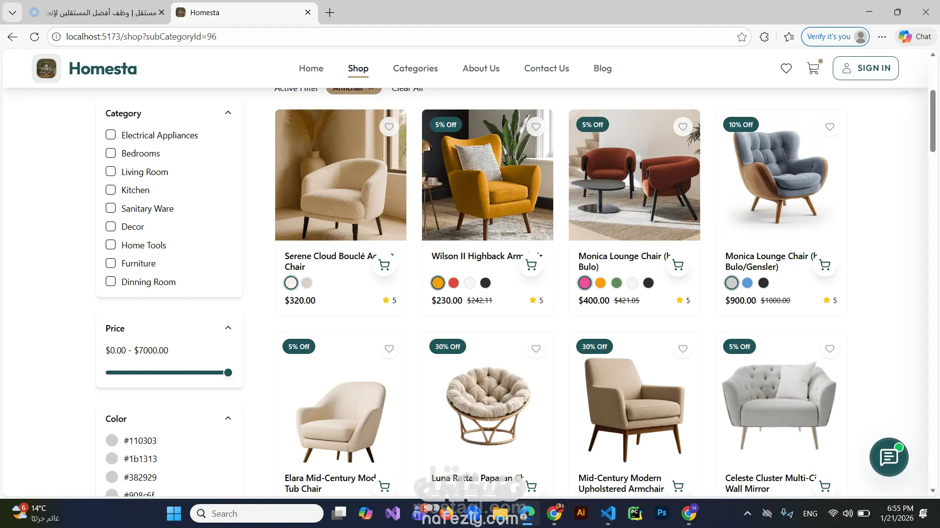 تطوير واجهة أمامية لموقع تجارة إلكترونية متخصص في بيع الأثاث، مع تصميم متجاوب يعمل على جميع الشاشات.