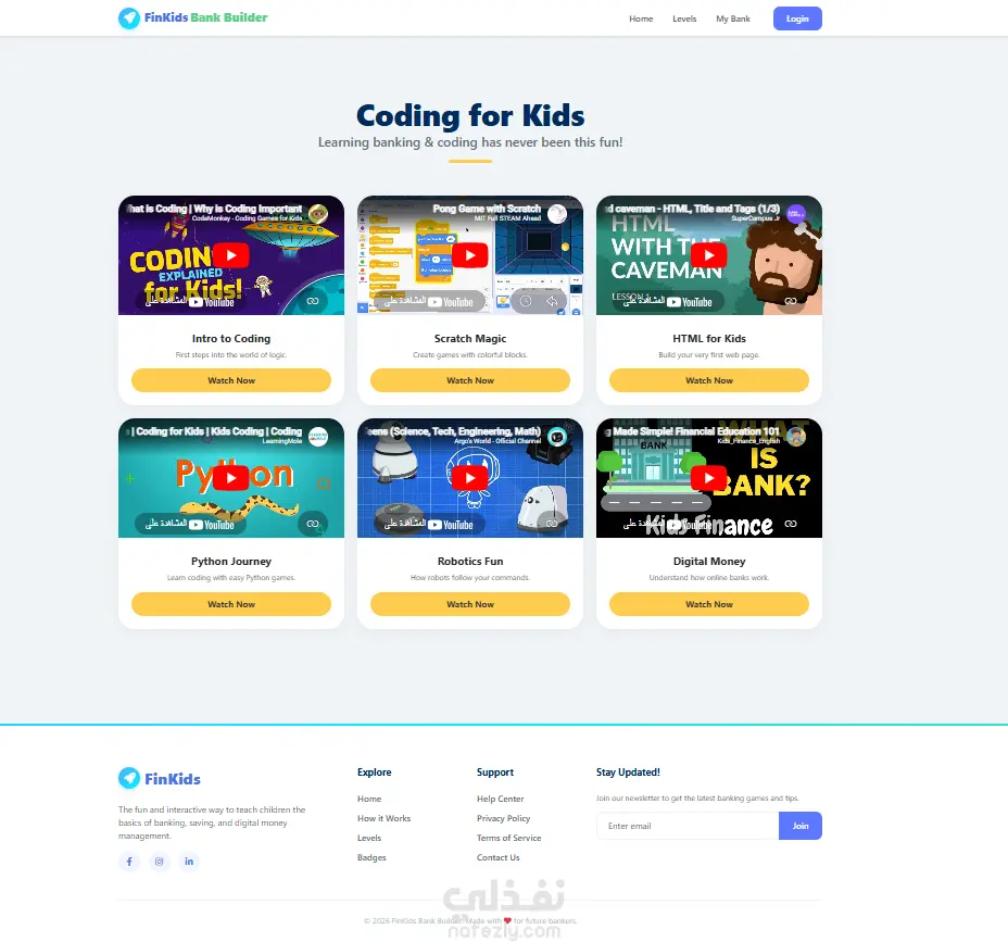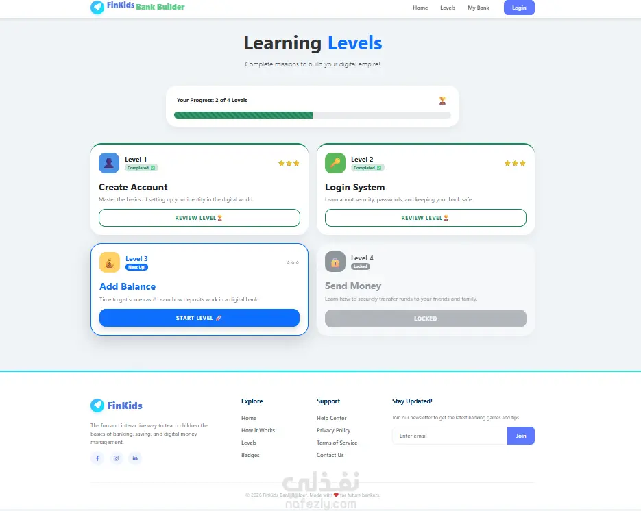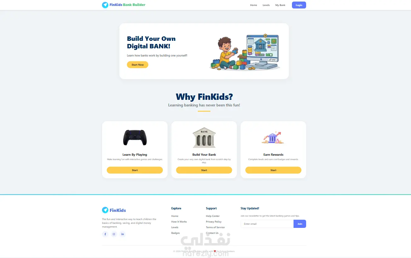 منصة تعليمية تفاعلية موجهة للأطفال تهدف إلى تبسيط مفاهيم البنوك والإدارة المالية من خلال تجربة ممتعة تعتمد على اللعب والتطبيق العملي. تتيح المنصة للمستخدمين بناء بنك رقمي خاص بهم خطوة بخطوة، مع تنفيذ مهام وتحديات تساعدهم على فهم الادخار، إدارة الأموال، وتحقيق الأرباح، مما يعزز الوعي المالي لديهم بطريقة سهلة وممتعة.