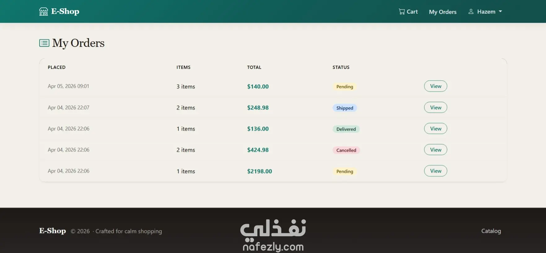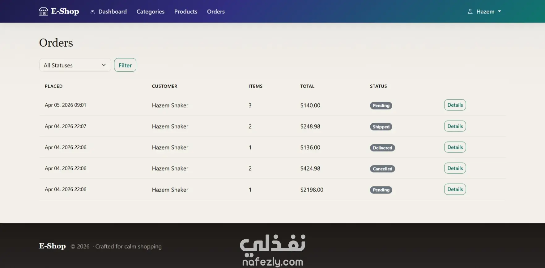 نظام تسوق أونلاين، كتالوج، سلة، طلبات، وإدارة منتجات وتصنيفات