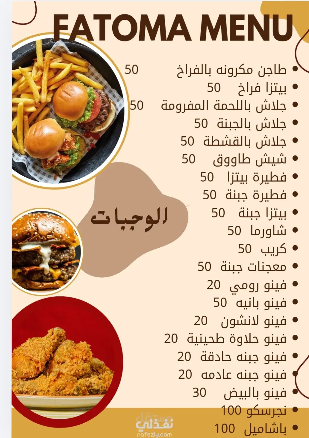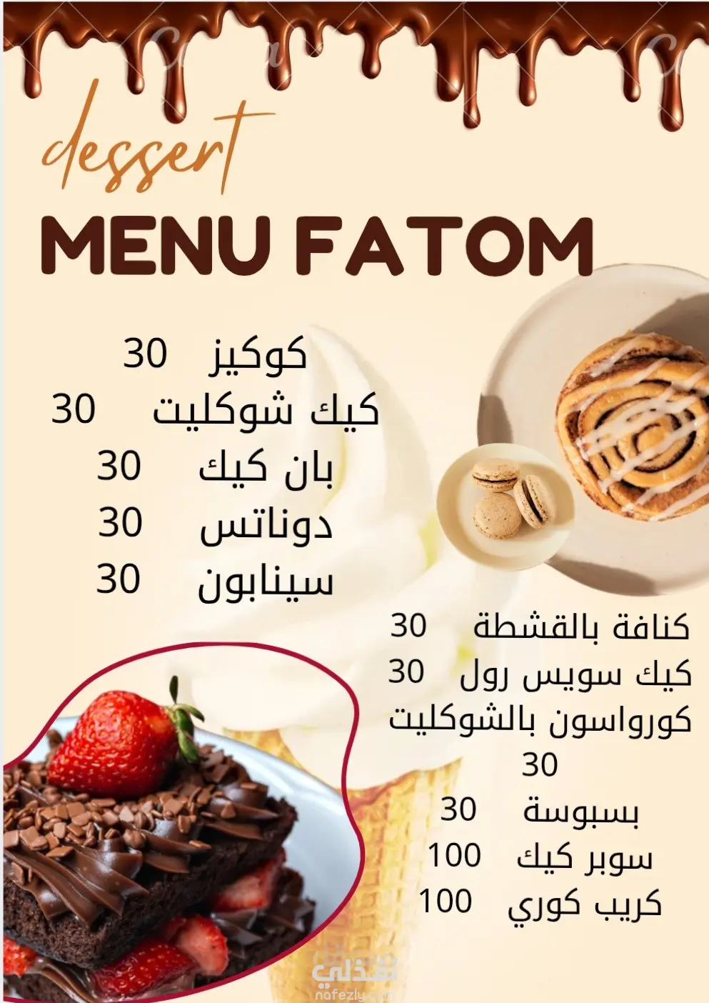 تصميم قائمة طعام احترافية لمطعم وحلويات "فطومة"