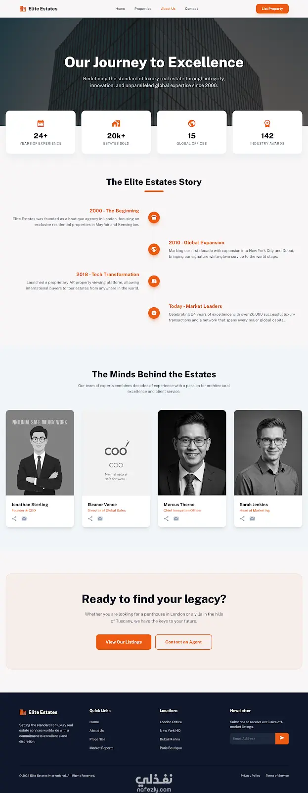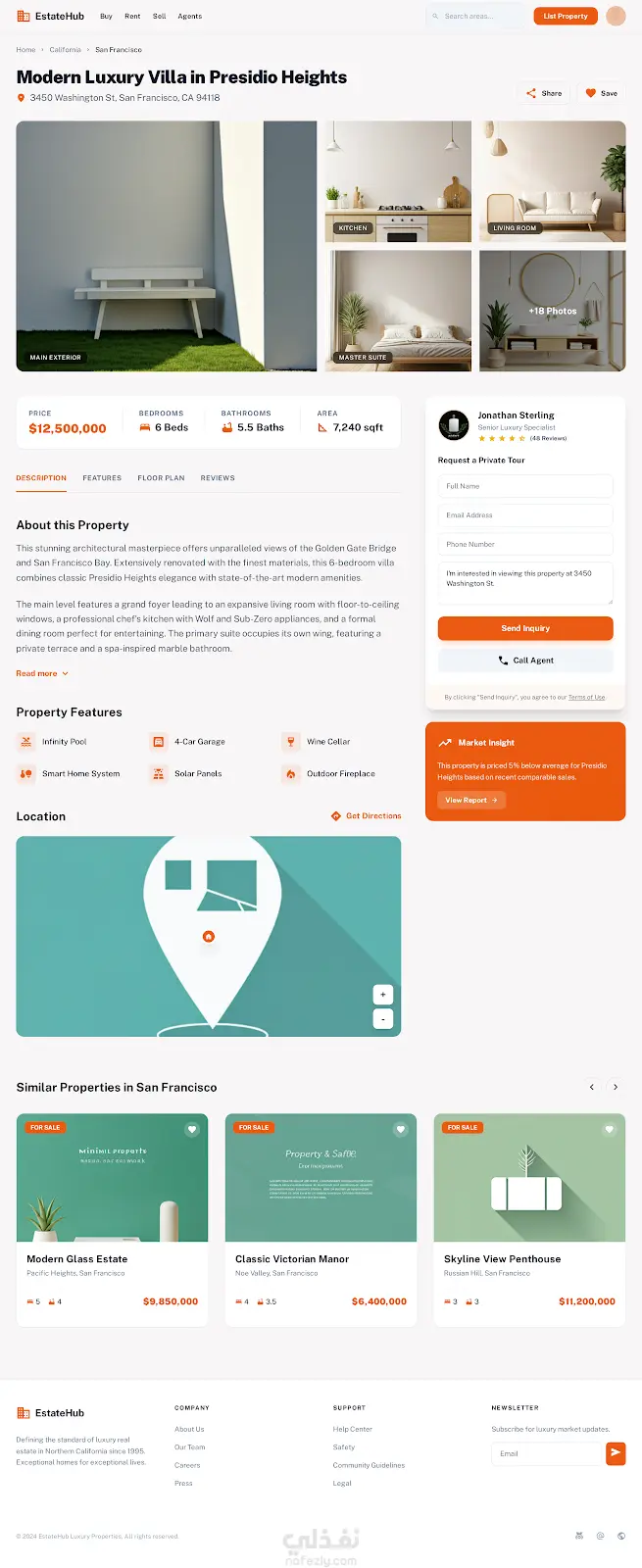 تصميم وتطوير موقع حديث لشركة عقارات يهدف إلى عرض العقارات بطريقة احترافية وسهلة الاستخدام. يتميز الموقع بواجهة مستخدم عصرية وتصميم جذاب يساعد العملاء على تصفح العقارات والاطلاع على تفاصيلها بسهولة. يتضمن الموقع صفحات لعرض العقارات، تفاصيل كل عقار، معلومات عن الشركة، والخدمات التي تقدمها، بالإضافة إلى نموذج تواصل لتمكين العملاء من الاستفسار أو حجز زيارة. كما يعتمد التصميم على تجربة مستخدم سلسة مع استخدام بعض التأثيرات الحركية (Animations) لإضفاء طابع تفاعلي وحديث على الموقع.
