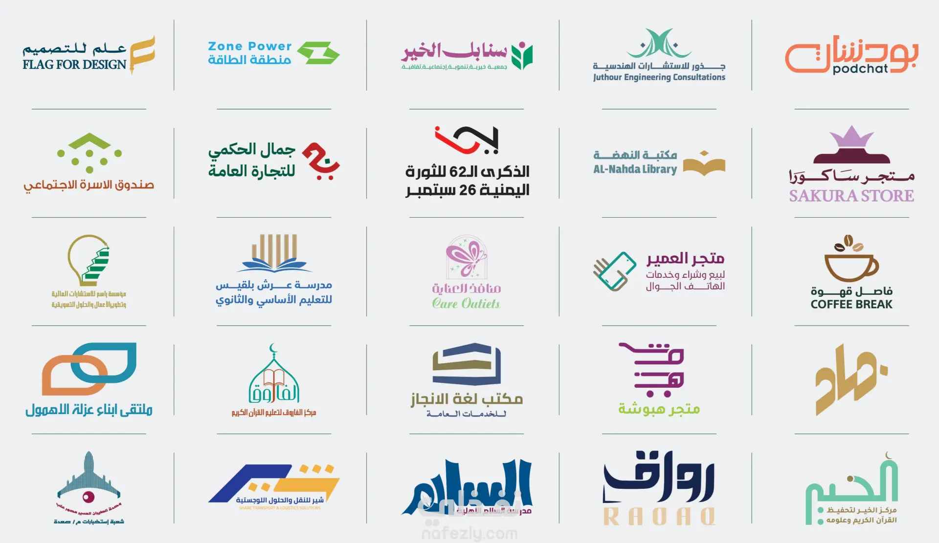 بين انحناءات الخط العربي ودقة الأشكال الهندسية، ولدت هذه الشعارات. كل مشروع هو تحدٍ جديد لاستخلاص جوهر العمل ووضعه في أيقونة بسيطة ومعبرة. أي شعار من المجموعة هو المفضل لديك؟ ©جميع الحقوق الفكرية لهذا العمل محفوظة. يمنع استخدامه أو اقتباسه أو إعادة إنتاجه بأي شكل لأي غرض دون إذن خطي مسبق مني.