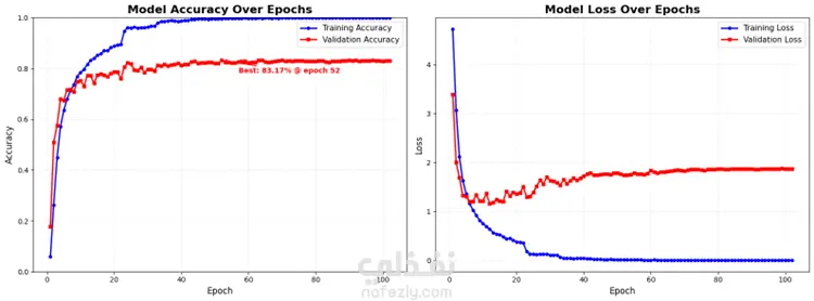 نظام ذكي لتحويل لغة الإشارة إلى نص والعكس باستخدام تقنيات التعلم العميق. تم بناء نموذج Transformer لاستخراج الخصائص الحركية من الفيديو استخدام MediaPipe لاستخراج 540 نقطة هيكلية لكل إطار تحقيق دقة 95% على بيانات ASL تطوير واجهة تفاعلية باستخدام Gradio تحسين سرعة الاستجابة لأقل من ثانيتين التقنيات المستخدمة: Python – TensorFlow – OpenCV – MediaPipe – NLP – Transformers
