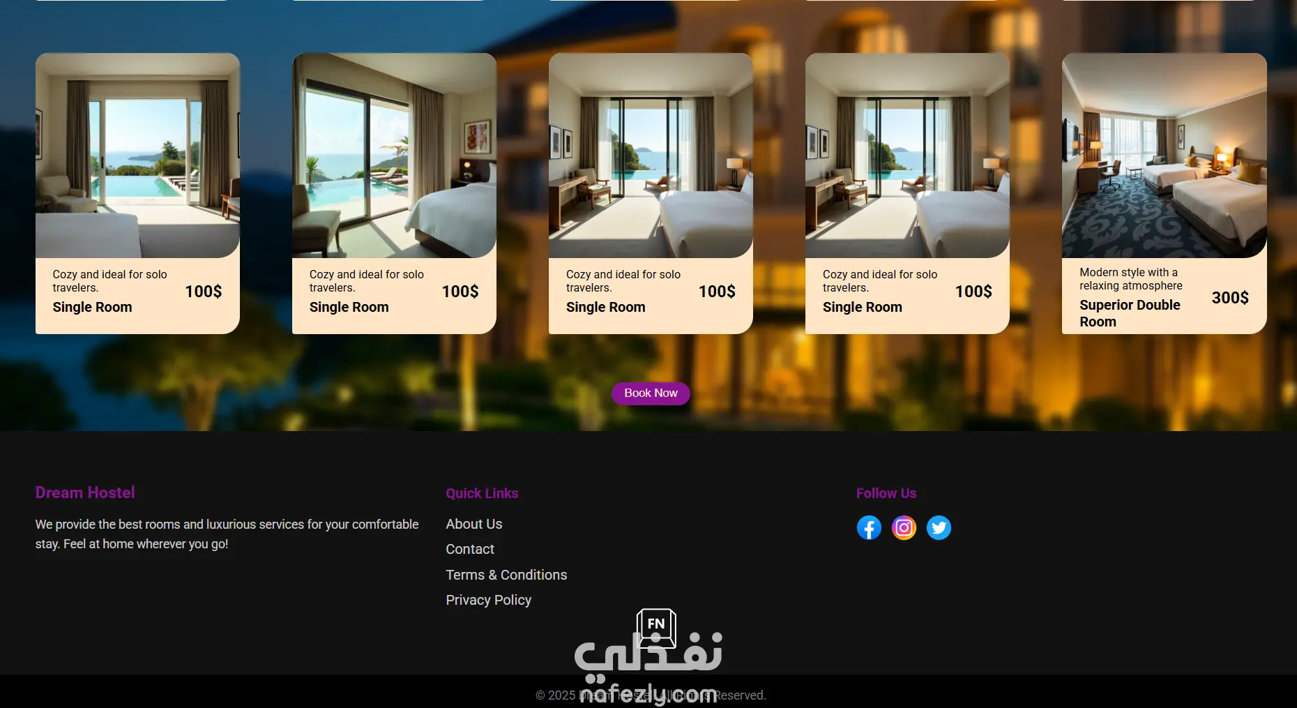 يهدف المشروع إلى تقديم واجهة احترافية تساعد على جذب العملاء وإبراز مميزات الفندق بشكل منظم وواضح.