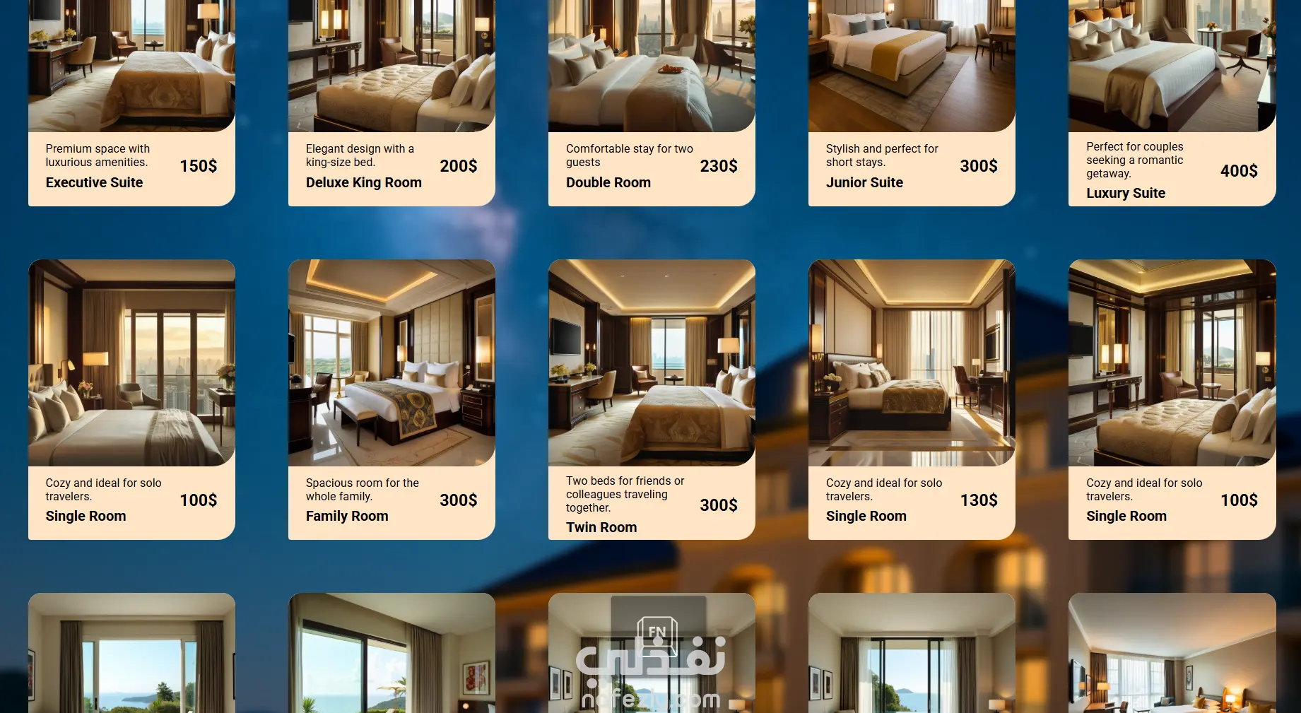 تنظيم واضح لعرض الغرف والأسعار